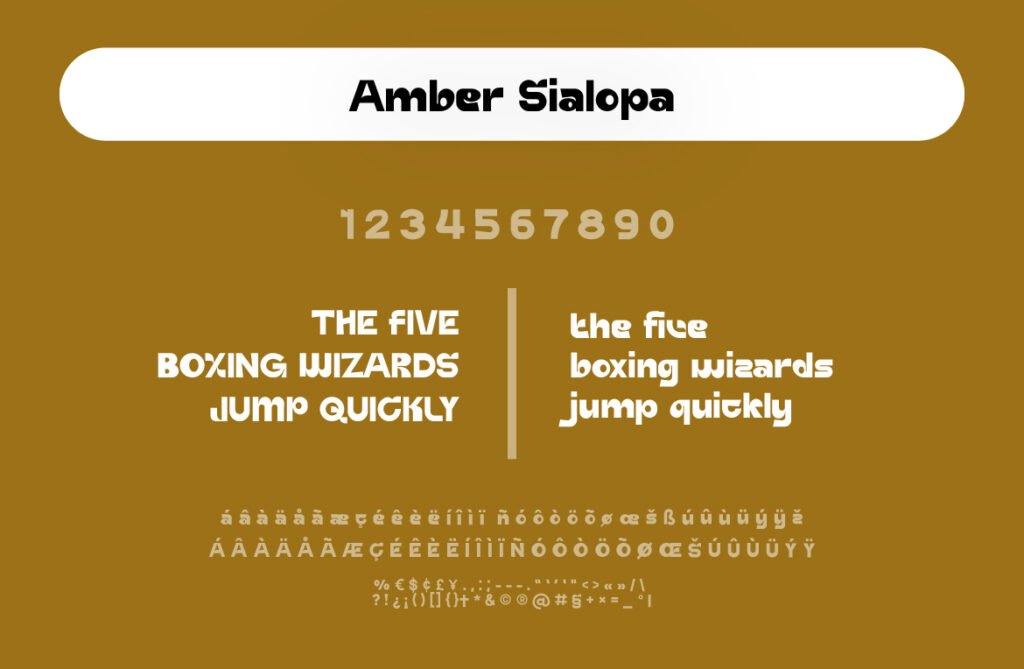 Amber Sialopa – Display retro classic headline is a bold and nostalgic typeface that channels the visual energy of mid-century typography while maintaining a clean and contemporary appeal. Inspired by vintage signage, print advertisements, and hand-lettered headlines from the 60s and 70s, Amber Sialopa brings a timeless charm to modern design projects. Its structured yet expressive letterforms make it ideal for branding, editorial layouts, packaging, and promotional materials where personality and impact go hand-in-hand. Each character in Amber Sialopa has been carefully crafted to reflect the warmth of analog design—featuring subtle texture overlays, soft edges, and balanced proportions that evoke a sense of heritage and craftsmanship.