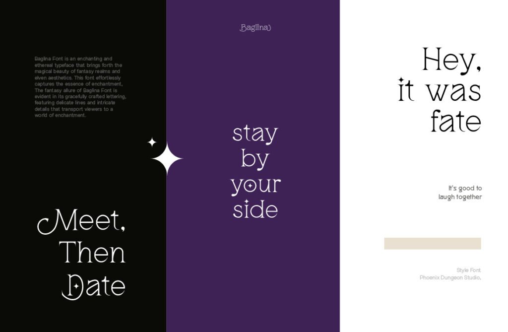 Baglina – Serif fantasy fairy tale star is a graceful and enchanting typeface that blends the elegance of serif typography with the whimsical charm of fairy tales and celestial magic. Inspired by classic storybook lettering and starlit skies, Baglina is ideal for designs that aim to capture the wonder, innocence, and imagination of fantasy narratives. Whether used in children’s books, branding for magical products, or digital illustrations, this font adds a touch of sparkle and storytelling magic to any visual composition. Each letter in Baglina features soft serifs, flowing curves, and delicate detailing that mimic the feel of traditional fairy tale fonts while maintaining a modern level of readability and structure.