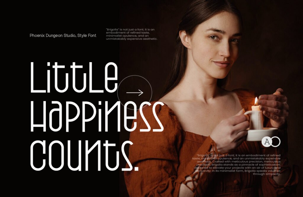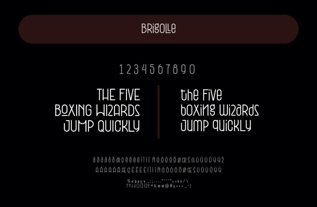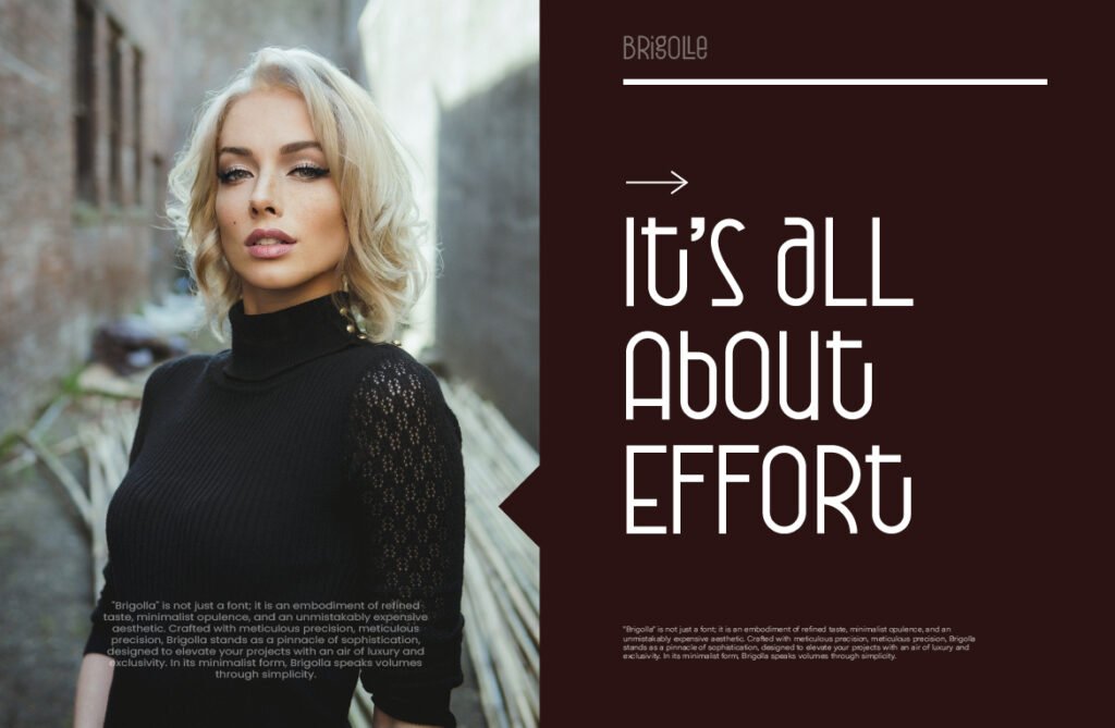 Its elegant simplicity makes it ideal for use in fashion magazines, product packaging, campaign slogans, and digital platforms where sophistication and clarity are essential. Despite its minimal appearance, Brigolle carries a strong visual voice that ensures it never gets lost in complex compositions. This font excels in environments where less is more. It works especially well with monochrome color schemes, soft gradients, and high-fashion photography, enhancing the overall aesthetic without overpowering the content. Brigolle supports multiple weights—from light and airy to bold and commanding—making it suitable for everything from delicate captions to impactful headlines.