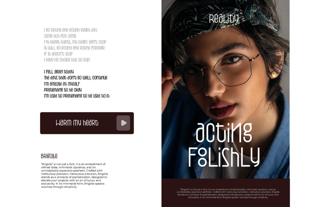 Brigolle – Minimalist stylish display fashion is a sleek and sophisticated typeface crafted for high-end visual communication, particularly within the fashion, beauty, and lifestyle industries. Combining the purity of minimalist design with the elegance of curated typography, Brigolle delivers a clean yet striking presence that enhances brand identity, editorial layouts, and luxury advertising. Designed with precision, Brigolle features open spacing, balanced proportions, and subtle contrast that elevate its readability while maintaining an air of exclusivity.