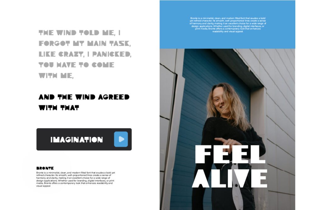 Despite its rigid appearance, the font maintains excellent readability, especially at larger sizes, making it effective in posters, banners, logos, and digital interfaces. Available in multiple styles—including regular, outlined, and inline—Bronte allows for creative layering and customization to enhance visual storytelling. Bronte works exceptionally well in environments that emphasize modernity, structure, and minimal ornamentation. It pairs beautifully with flat design schemes, monochrome layouts, and geometric illustrations, reinforcing a sense of order and visual harmony. Whether used in tech branding, architectural identities, or lifestyle campaigns, this font enhances the emotional tone and visual impact of any design.