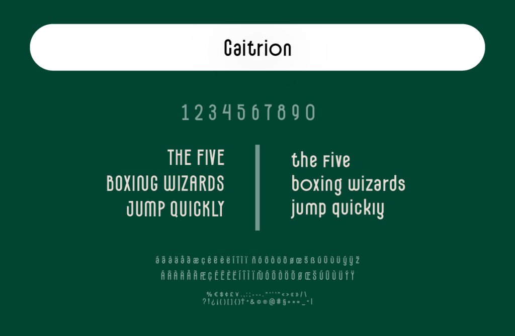 Its soft yet confident appearance ensures readability across both screen and print formats, especially at medium to large sizes. Caitrion comes in multiple weights—from light and airy to bold and expressive—offering flexibility for headlines, captions, and interface elements. What sets Caitrion apart is its ability to feel informal without sacrificing professionalism. Whether used in app interfaces, packaging, or promotional banners, it maintains a fresh and current look that appeals to younger audiences while remaining versatile enough for broader brand applications. The font also includes OpenType features such as ligatures and stylistic alternates, allowing designers to customize text for added visual interest.