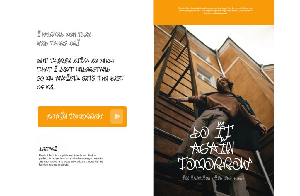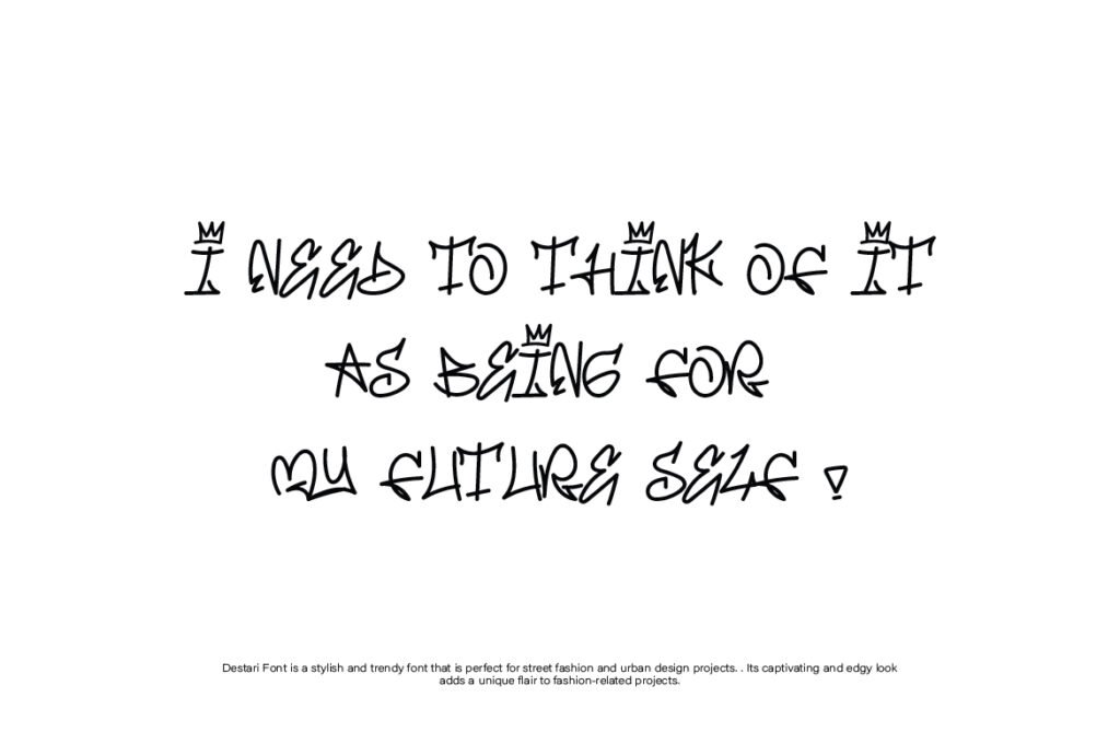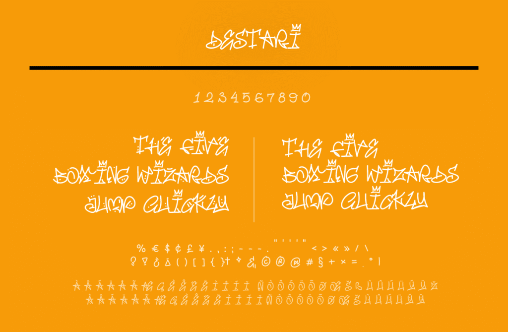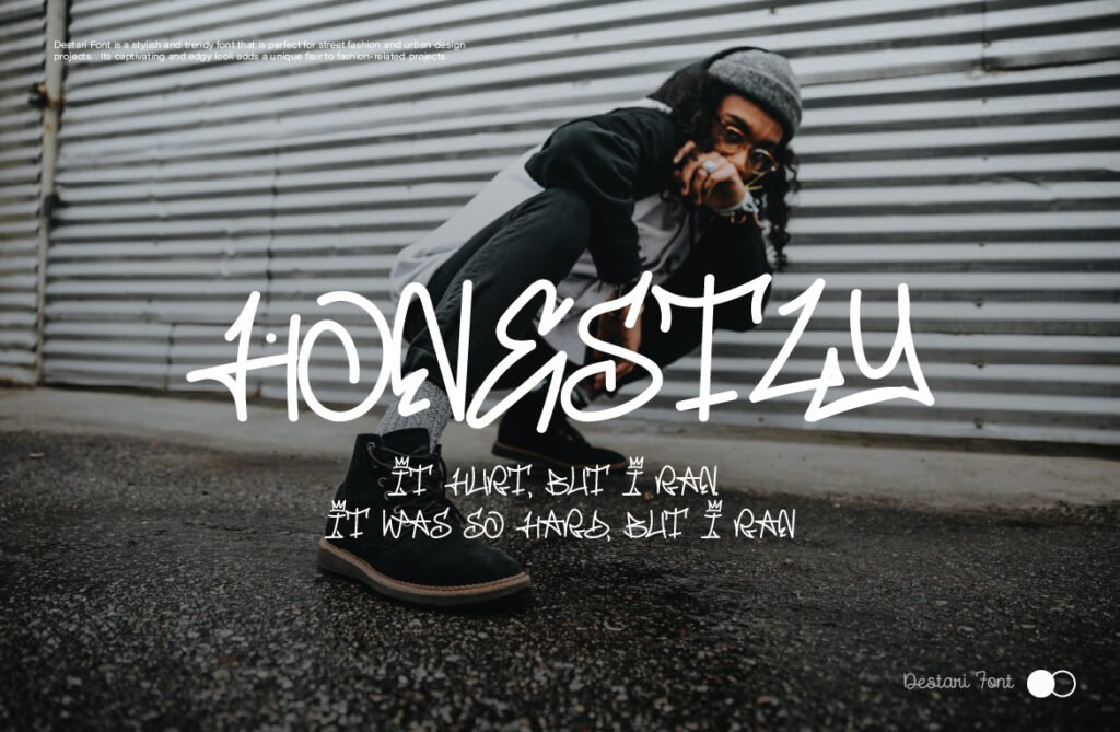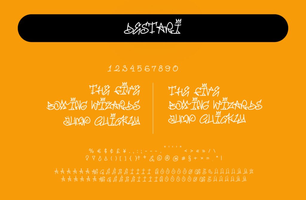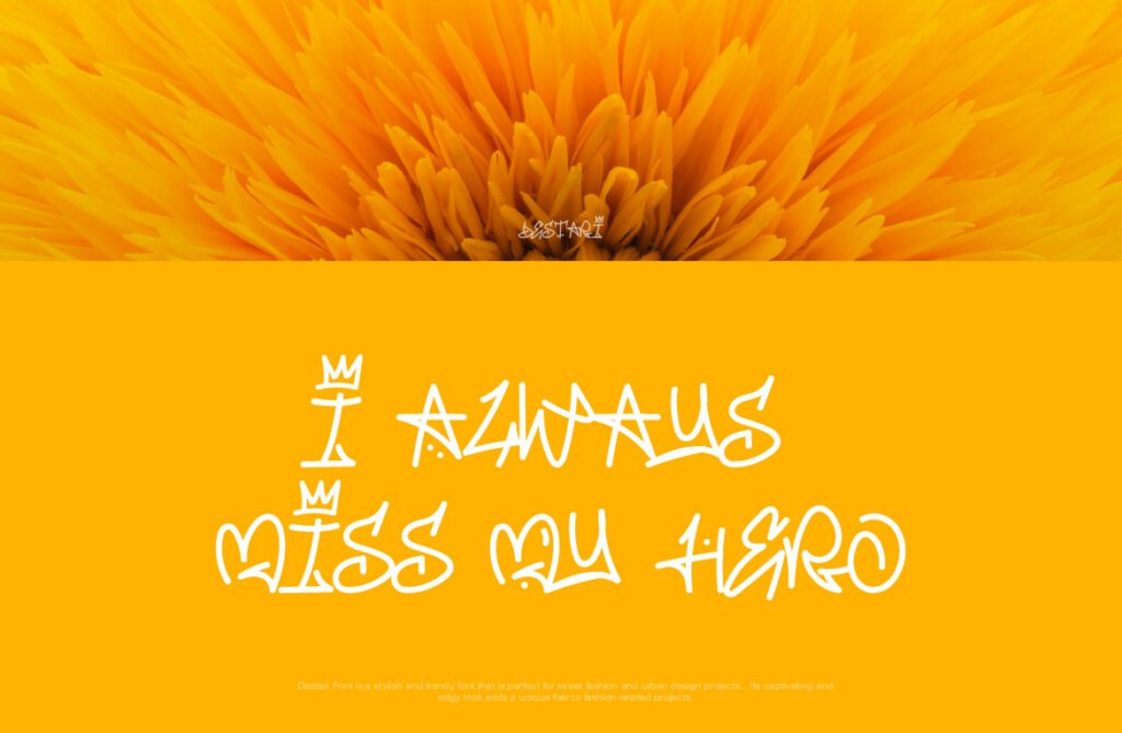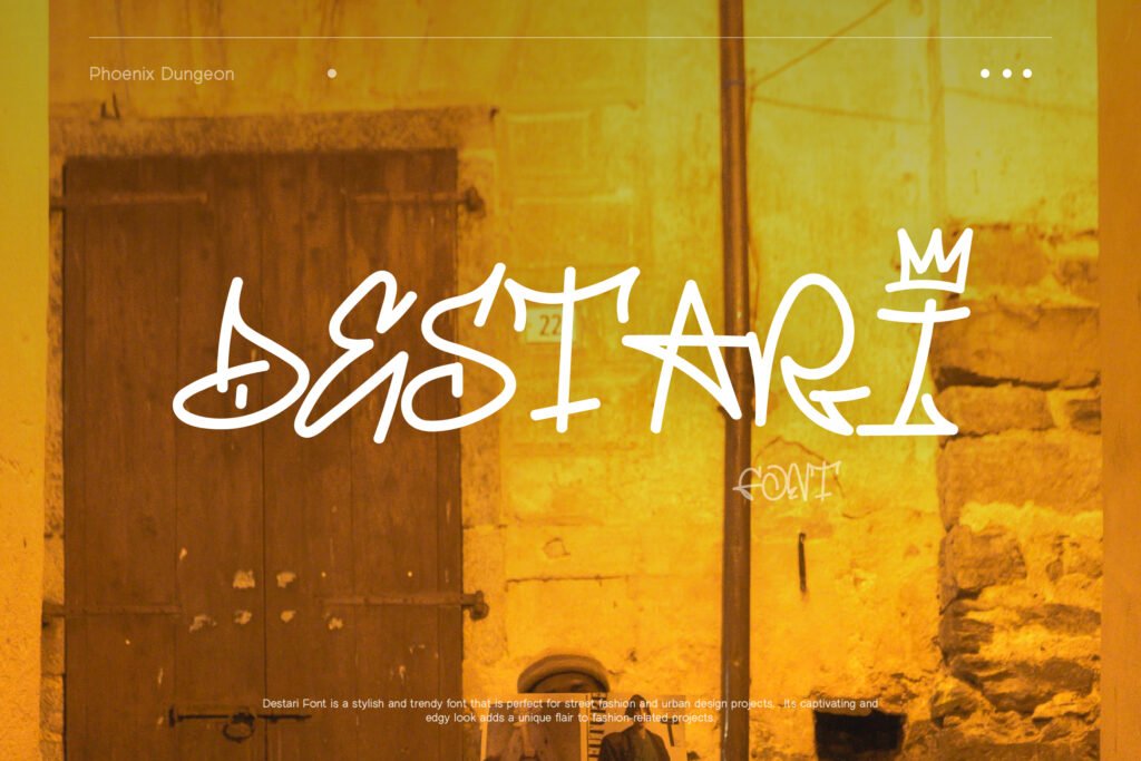 Destari – Handwriting y2k streetstyle mural is a vibrant and nostalgic typeface inspired by early 2000s aesthetics, graffiti culture, and digital handwriting styles. With its retro-futuristic curves, pixel-like textures, and urban edge, Destari perfectly captures the essence of Y2K fashion, internet nostalgia, and street-style visuals. This font blends the personal feel of handwriting with the boldness of urban art, making it ideal for projects that aim to blend past trends with contemporary design.