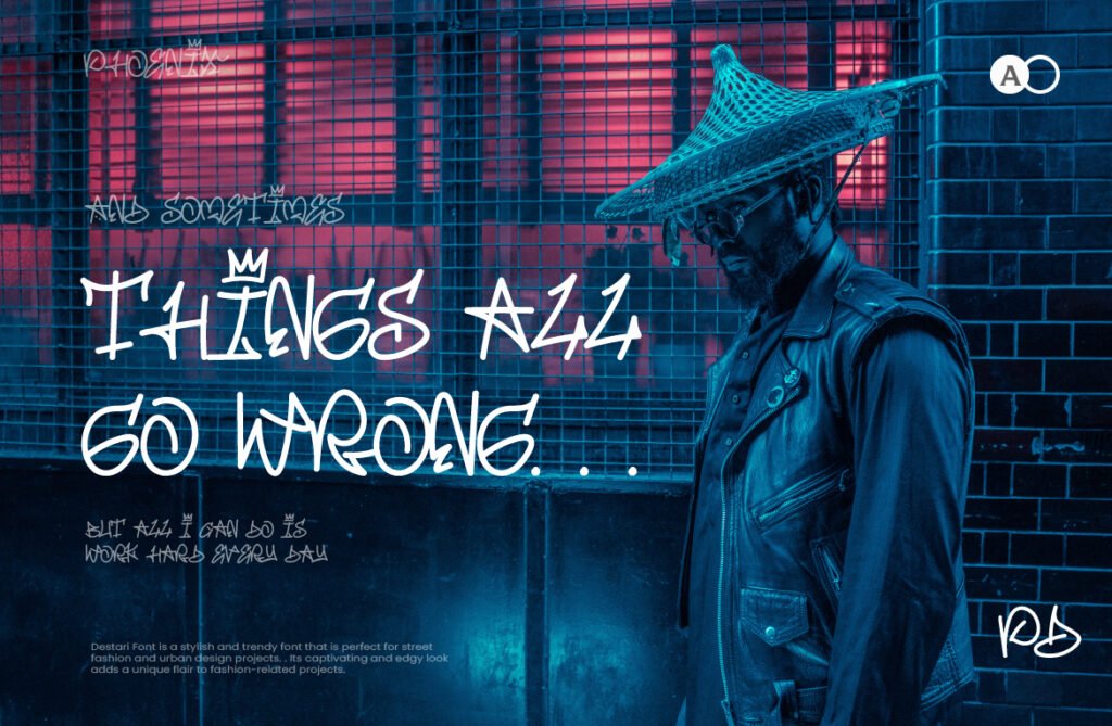 Designed for high-impact applications such as murals, apparel branding, music covers, and digital illustrations, Destari stands out with its unique character shapes and slightly distorted forms that mimic screen-printed or digitally drawn lettering. The font works exceptionally well in neon color schemes, glitch effects, and vaporwave-inspired layouts, appealing to Gen Z and millennial audiences looking for a fresh yet familiar aesthetic. Destari also includes alternates and stylistic sets that allow for creative customization, making it suitable for both short-form text and large-scale visual displays. Whether used in a streetwear brand logo, an album cover, or a social media post, this font delivers a strong visual identity rooted in early digital culture and urban expression.