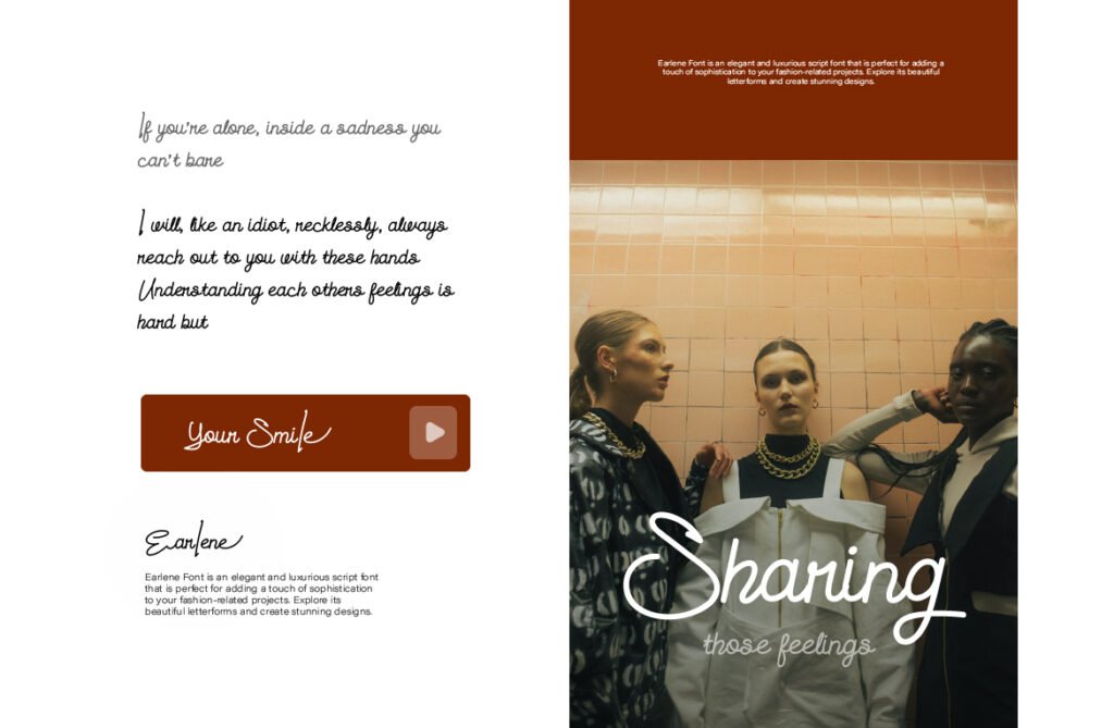 Earlene – Script romance love handwriting is a beautifully delicate and emotionally expressive typeface designed to evoke feelings of love, tenderness, and sincerity. With its soft curves, flowing strokes, and natural rhythm, Earlene mimics the warmth of genuine handwriting, making it an ideal choice for designs that aim to connect with the audience on a personal and emotional level. Whether used for wedding stationery, romantic branding, or heartfelt social media content, this font brings a sense of intimacy and charm that digital typography often lacks.