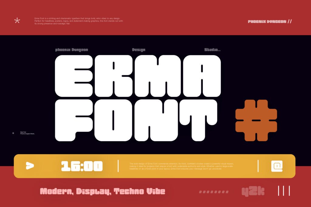 Erma – Display bold rounded square is a strong and versatile typeface that merges the structured clarity of square letterforms with the friendly warmth of rounded edges. Designed for high-impact visibility, Erma brings a sense of boldness, modernity, and approachability to branding, advertising, and digital interfaces. Whether used in tech branding, UI/UX design, or lifestyle content, this font adds a layer of visual strength and stylistic balance that enhances the overall design experience. Each character in Erma is built on a geometric foundation, featuring thick strokes, soft corners, and balanced proportions that give it a strong yet welcoming presence.