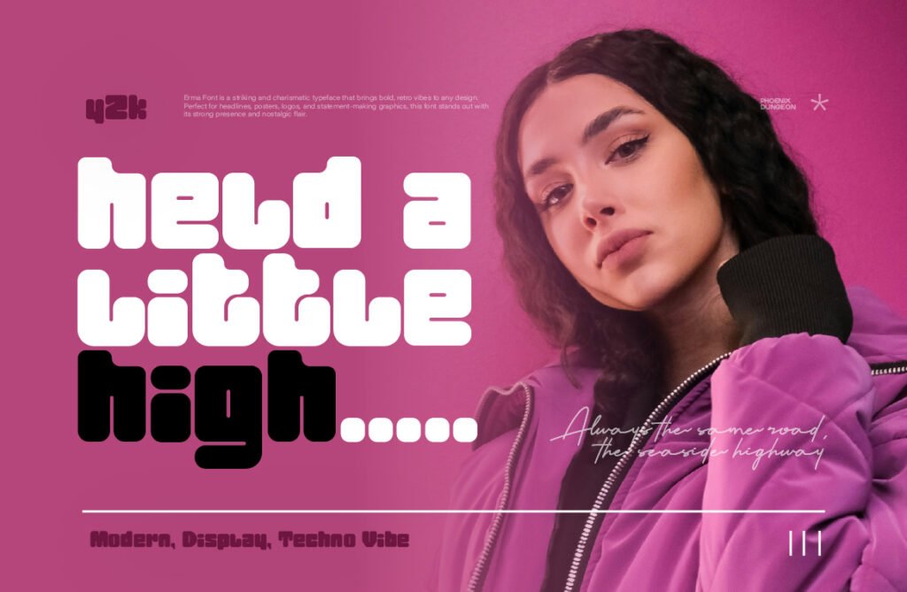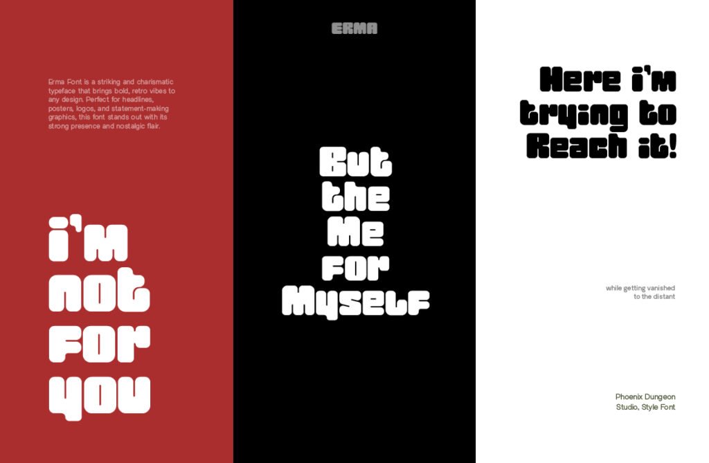 Despite its bold appearance, the font maintains excellent readability, especially at larger sizes, making it ideal for use in posters, banners, logos, and promotional graphics. Available in multiple versions—including outlined, inline, and textured—Erma allows for creative layering and customization to enhance its visual storytelling. Erma works exceptionally well in environments that emphasize modernity, clarity, and a touch of friendliness. It pairs beautifully with flat design schemes, neon gradients, and clean illustrations, reinforcing a sense of order and visual harmony. Whether used in startup branding, digital product interfaces, or lifestyle campaigns, this font enhances the emotional tone and visual impact of any design.