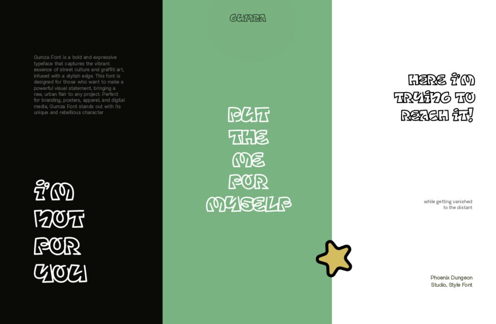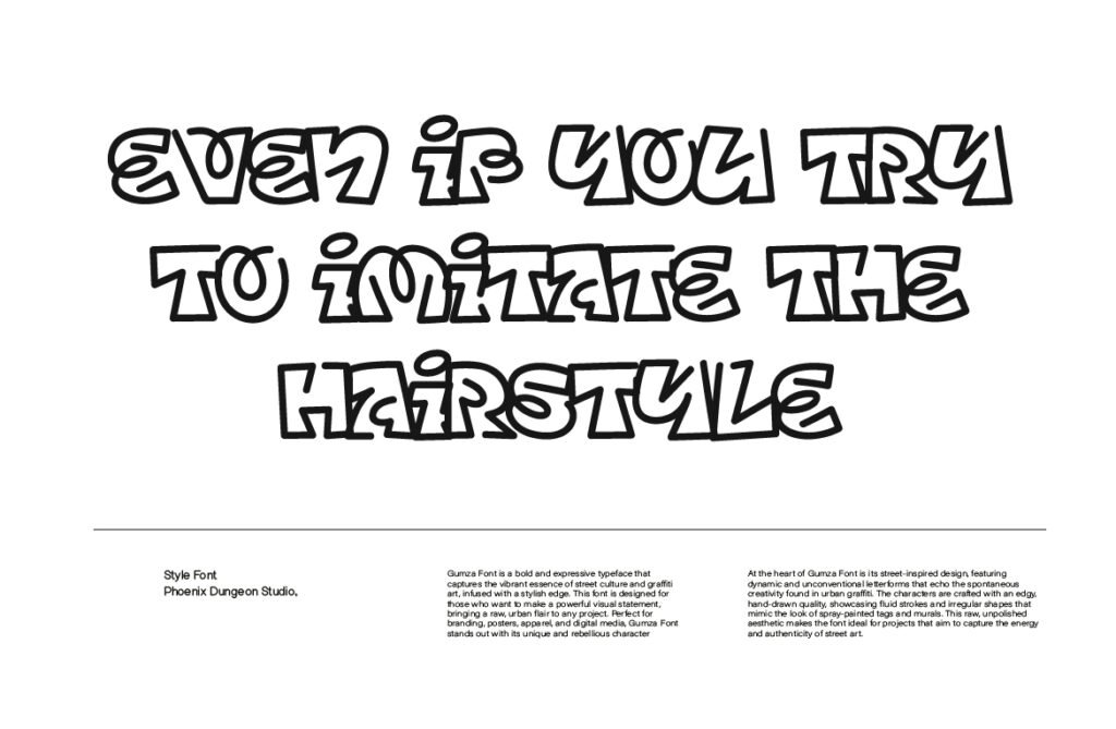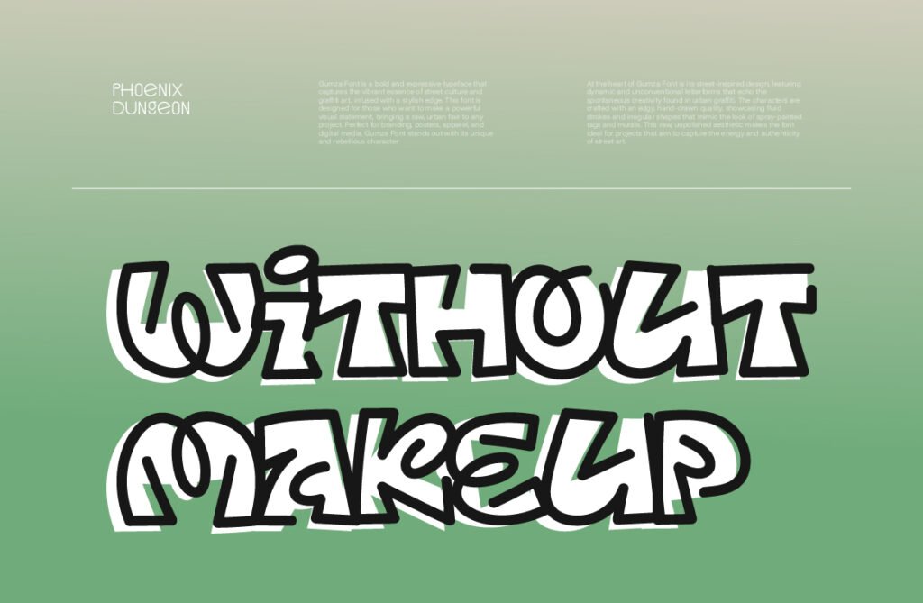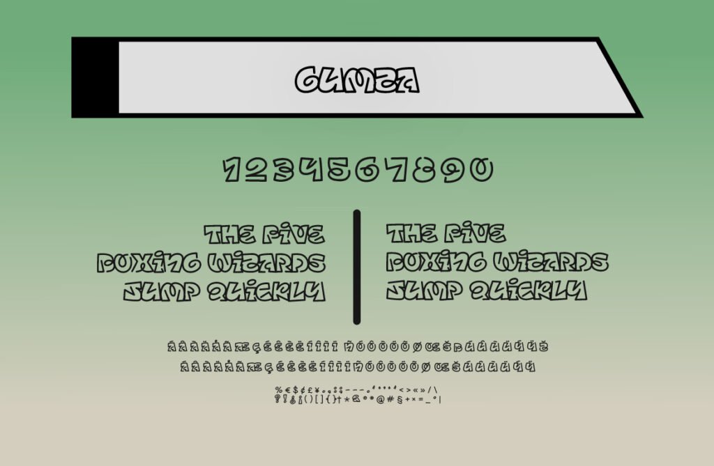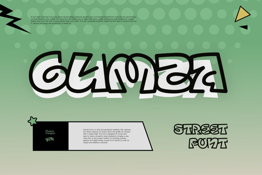 Despite its decorative nature, the font remains highly legible when used at moderate to large sizes, making it ideal for posters, logos, merchandise, and animated content. It supports alternate versions and stylistic sets, allowing designers to customize the look based on theme and context—from sleek and modern to edgy and retro. Gumza works exceptionally well in designs targeting younger audiences, retro-themed brands, or digital-first content that wants to inject nostalgia and playfulness into their work. It pairs beautifully with neon gradients, chrome effects, and pixel-inspired textures, aligning perfectly with current trends in Gen Z aesthetics and digital revivalism. Whether used in apparel branding, event promotions, or digital illustrations, Gumza adds a layer of fun and personality that enhances the overall design experience.
