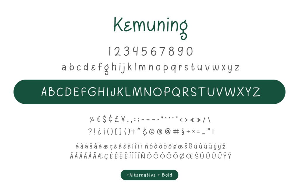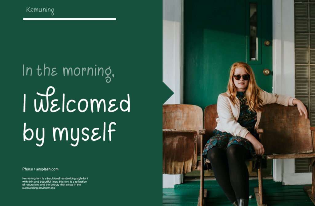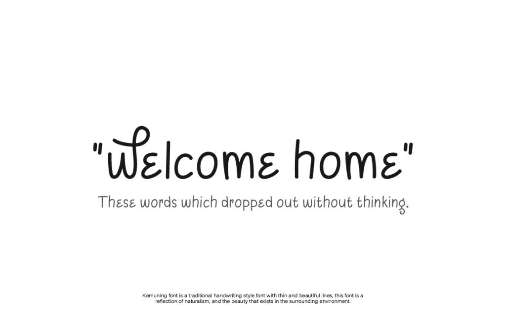 Kemuning is a quiet storm of emotion. Inspired by the subtlety of modern calligraphy and the restraint of minimalist design, it offers a handwriting experience that’s light yet emotionally impactful. Each stroke flows like it was written by someone deep in thought, resulting in a font that feels personal but never chaotic. The spacing is generous, and the form is restrained, creating an aesthetic that feels fresh, sincere, and unforced. This is the kind of font that says more with less.