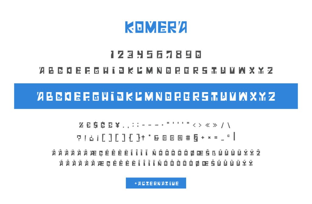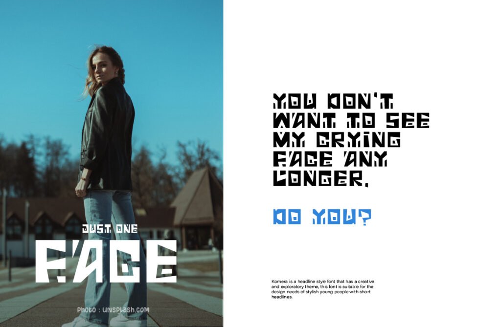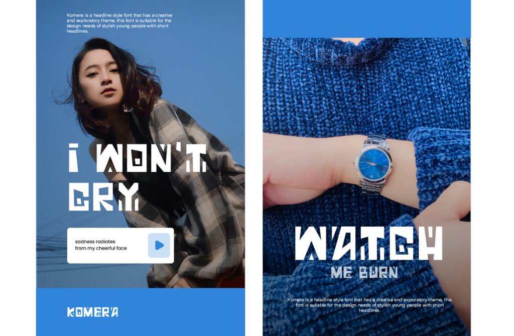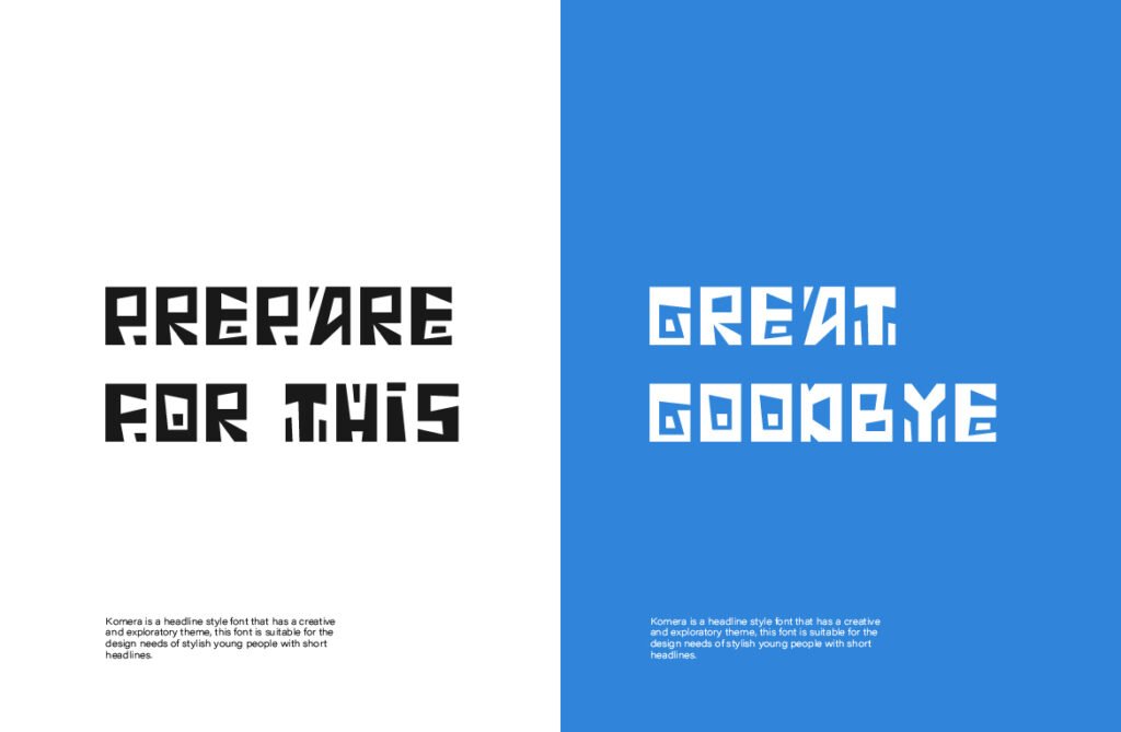 There’s a timeless energy to Komera, but not in a nostalgic way. Instead, it brings that legacy into the present with clean cuts and confident rhythm. Its spacing is tight, and its proportions are bold, giving each word weight and certainty. Whether used in a luxury fashion brand or a cultural institution, Komera leaves a lasting impression of seriousness, formality, and authority. It’s not experimental, but it is unforgettable. For design systems that demand gravitas without excess ornamentation, Komera offers strength in its most distilled form.
