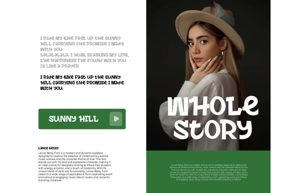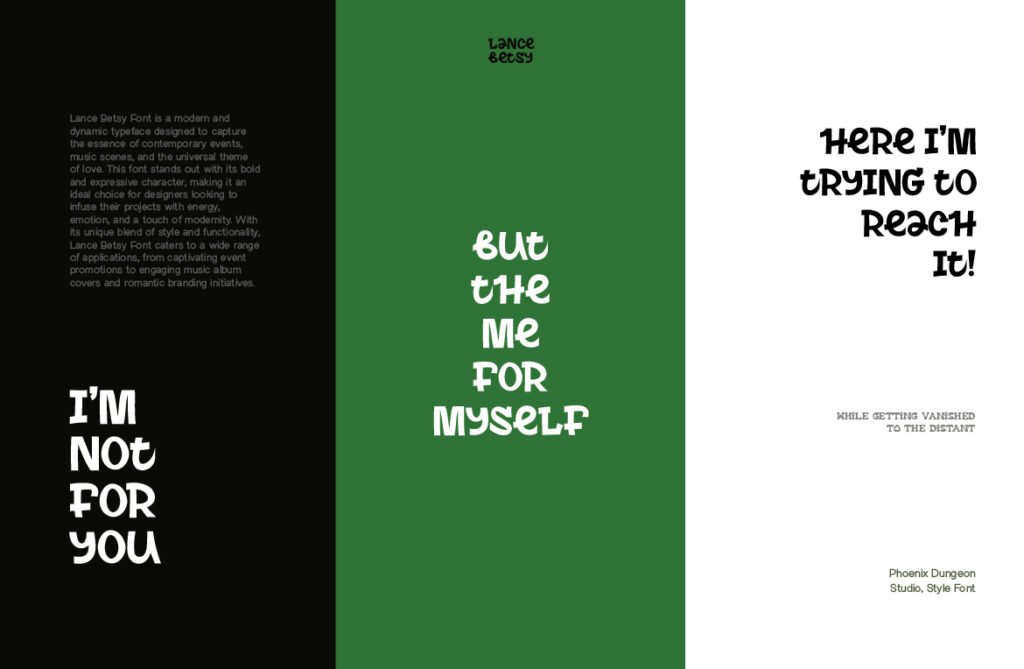 Lance Betsy – Display headline casual sharp is a bold and contemporary typeface that merges the clean efficiency of modern typography with the expressive edge of casual design. Featuring sharp angles, clean lines, and a confident presence, Lance Betsy is ideal for designers who want to communicate clarity, energy, and a modern edge without sacrificing approachability. It works exceptionally well in UI/UX interfaces, branding systems, advertising, and editorial layouts where function and form coexist seamlessly. This font stands out for its dual functionality—performing exceptionally well as both a body text option and a bold display type. Its geometric sans-serif foundation ensures legibility at small sizes, making it ideal for app navigation, dashboard interfaces, and mobile content.