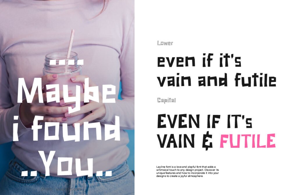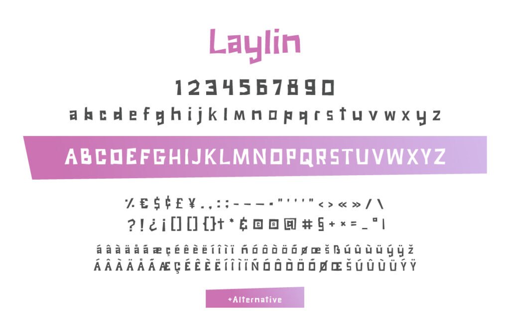 Laylin is a vibrant and quirky display font that captures the charm of playful paper-cut design. Crafted with a hand-cut feel and infused with joyful character, Laylin offers an energetic twist to children’s books, educational posters, crafts, and party invitations. Every letter feels like it’s been snipped from colorful construction paper—irregular, organic, yet surprisingly legible. Despite its childlike whimsy, Laylin balances fun and functionality with clean kerning and smooth vector outlines. It’s not just for young audiences—Laylin’s expressive shape and punchy silhouette also make it perfect for branding that aims to be approachable, upbeat, and slightly eccentric.