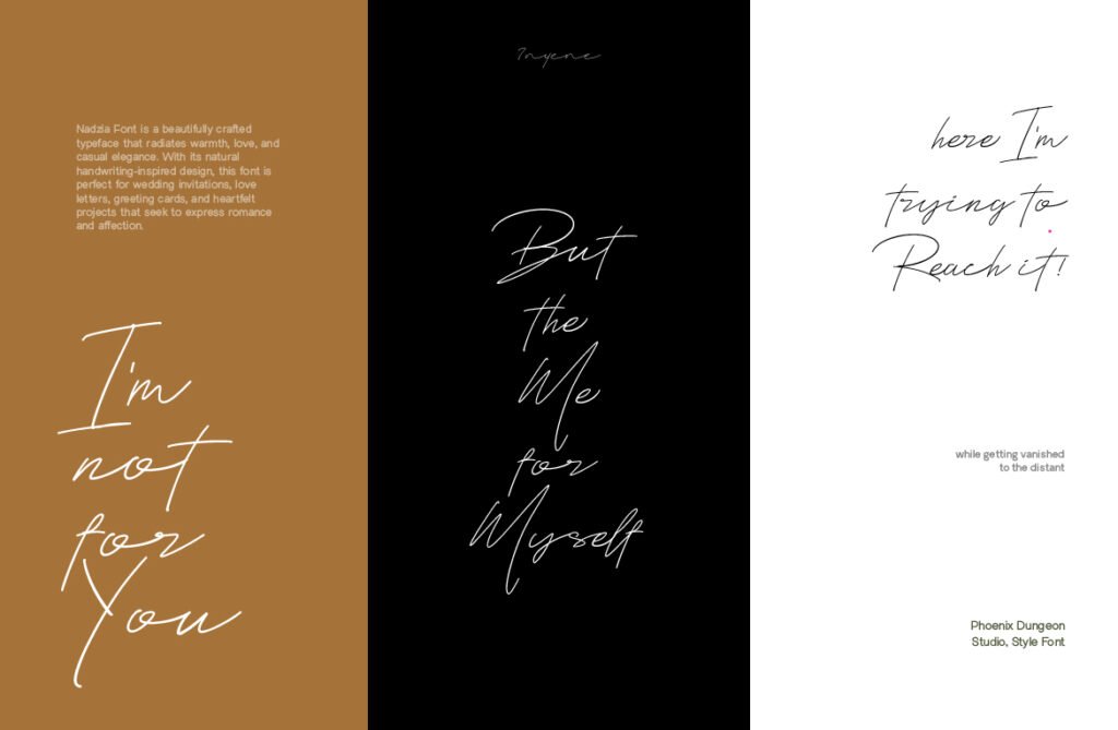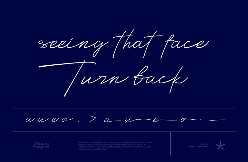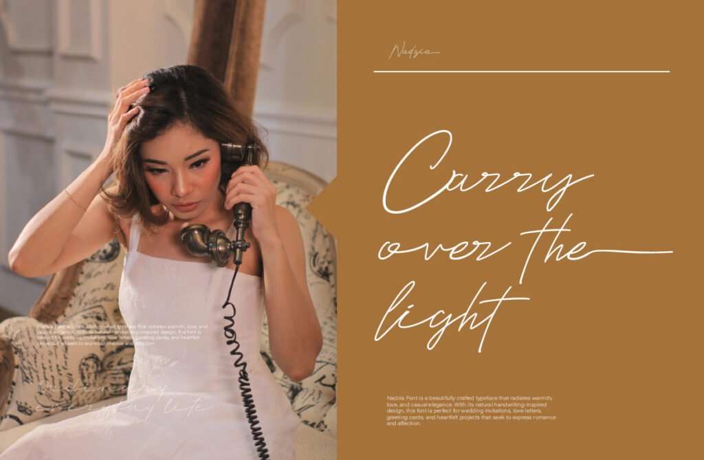 Nadzia – Script minimalist love romance is a soft and emotionally expressive typeface that blends the elegance of script lettering with the clarity and simplicity of minimalist design. With its gentle curves, flowing strokes, and open spacing, Nadzia brings a sense of sincerity, warmth, and modern romance to any visual composition. Whether used in wedding invitations, romantic branding, or quote-based social media content, this font adds a layer of personal charm and emotional depth that enhances the overall design experience. Each character in Nadzia mimics the rhythm of real handwriting, with subtle variations in stroke thickness and baseline movement that give it a spontaneous and personable feel.