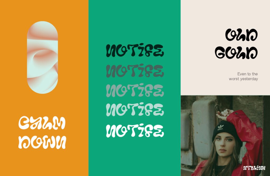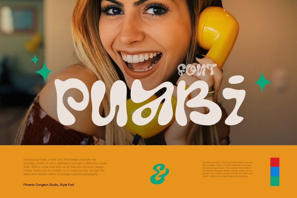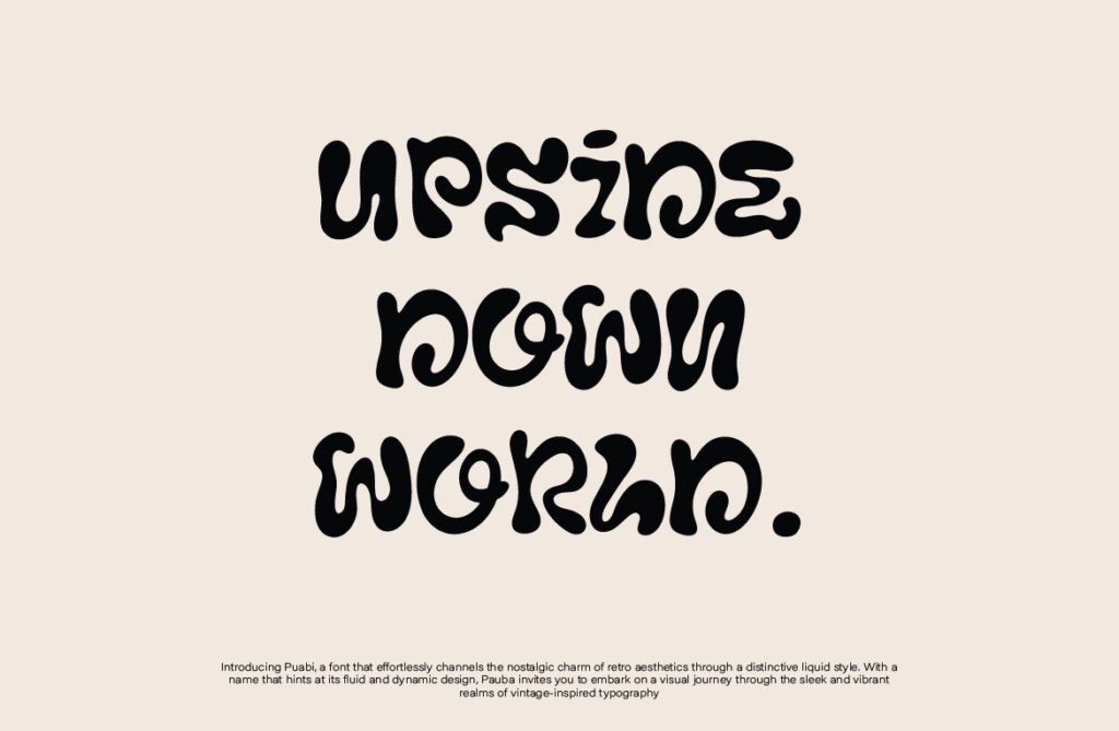 Puabi – Retro liquid balloon y2k is a vibrant and nostalgic display font that channels the energetic spirit of early 2000s digital culture, bubble letters, and fluid animation styles. With its rounded contours, glossy textures, and exaggerated shapes, Puabi captures the essence of Y2K aesthetics, retro gaming, and cartoon-inspired design. It’s perfect for creatives looking to evoke a sense of fun, freedom, and digital nostalgia in their projects. Each letter in Puabi mimics the softness of inflated balloons or liquid-filled forms, giving it a tactile and dynamic presence.