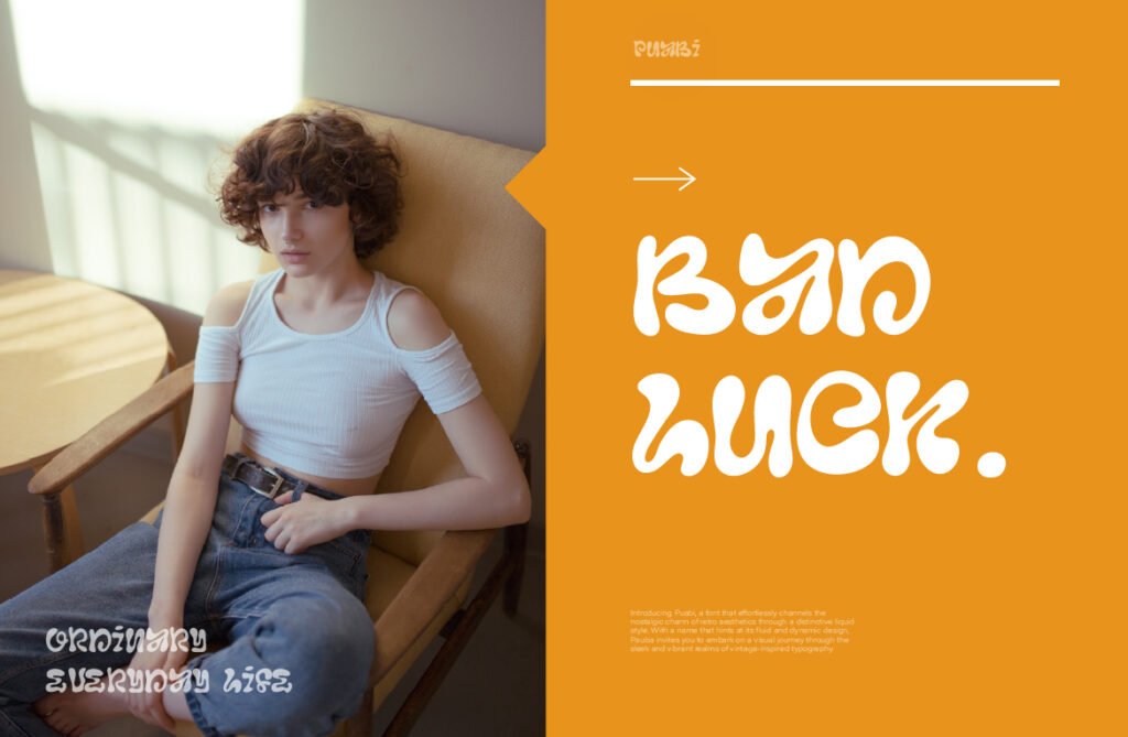This makes it especially effective in branding, merchandise, music visuals, and digital art that aim to reflect a carefree and colorful past. Despite its decorative nature, Puabi maintains strong legibility when used at larger sizes, ensuring it remains impactful in posters, logos, and social media headers. The font works exceptionally well with neon gradients, chrome effects, and glitch overlays, aligning perfectly with current trends in Gen Z aesthetics and digital revivalism. Puabi also includes alternate versions and stylistic sets that allow for customization, making it easy to adapt to different themes—from bubbly and cute to edgy and futuristic.