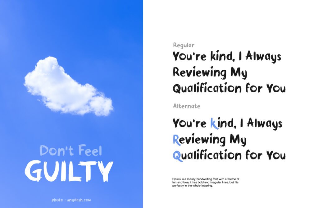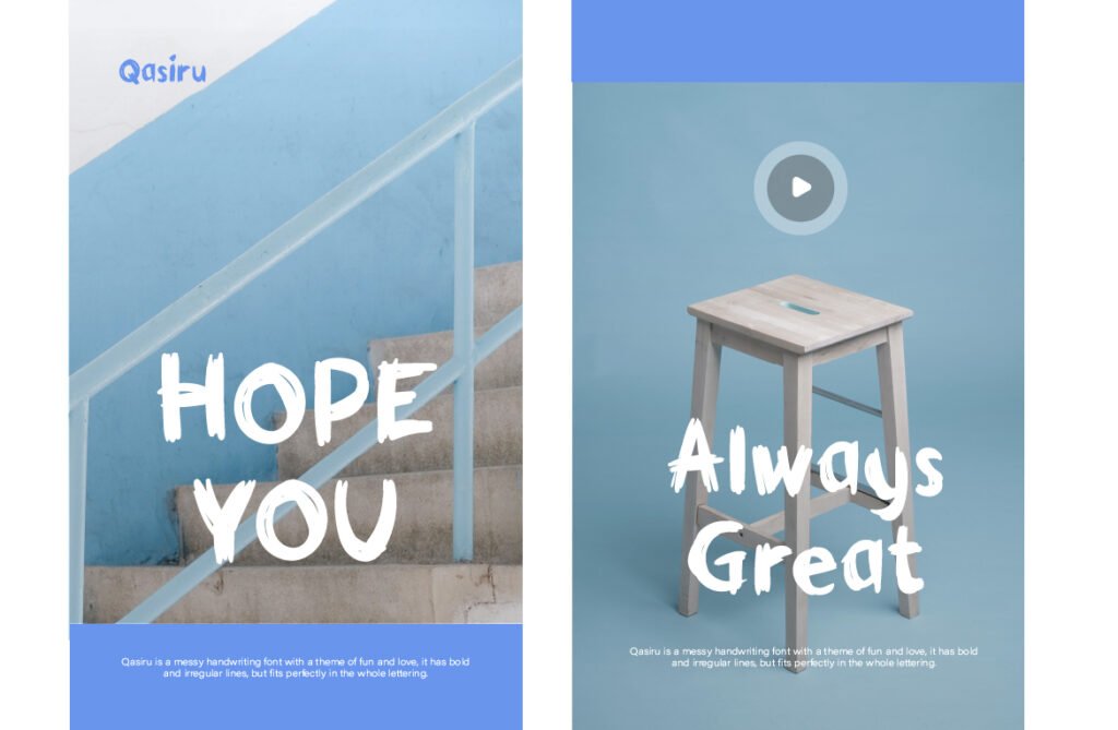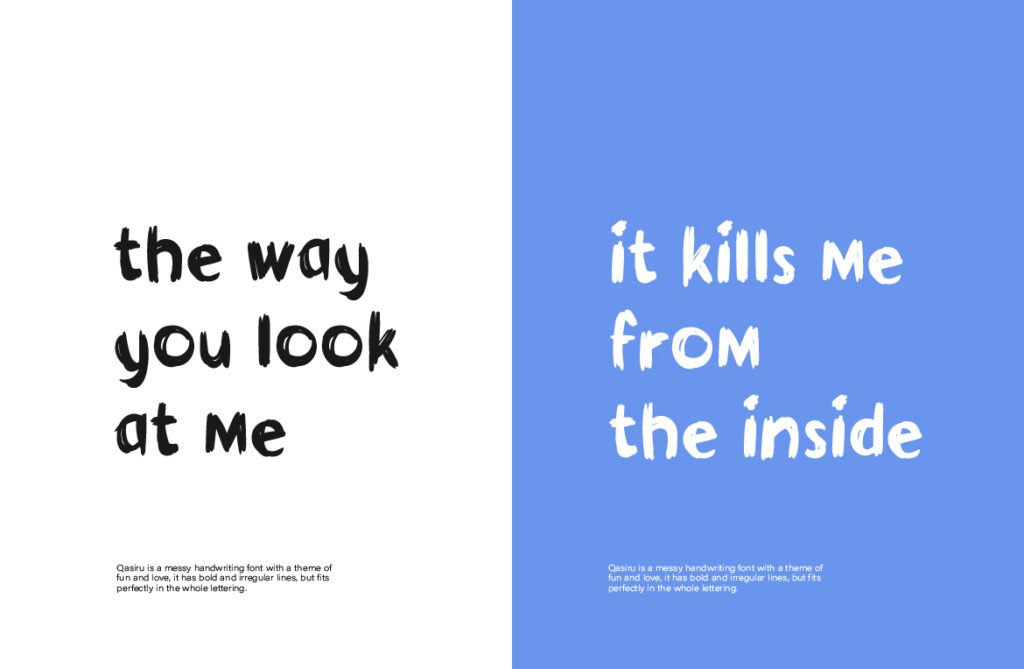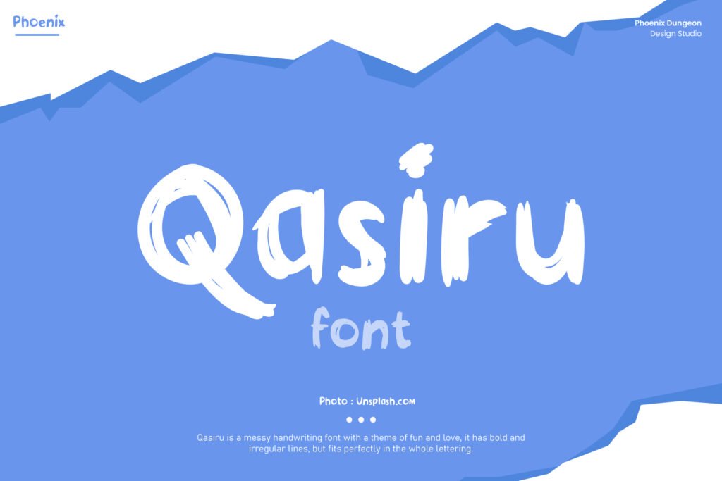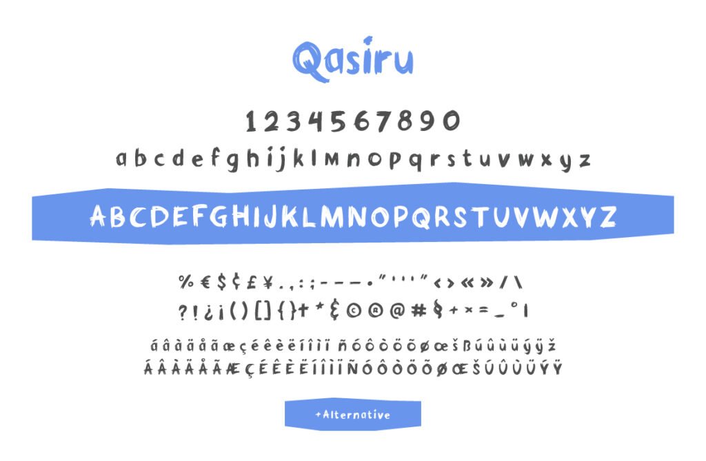 With its thick brush strokes and lively texture, Qosiru is perfect for children’s books, creative workshops, art supply packaging, or any brand looking to inject excitement and honesty into their identity. The characters feel wild and alive—like they could leap off the page. It works beautifully in loud, fun layouts and expressive headers, and pairs best with vivid color palettes, hand-drawn illustrations, or tactile textures.