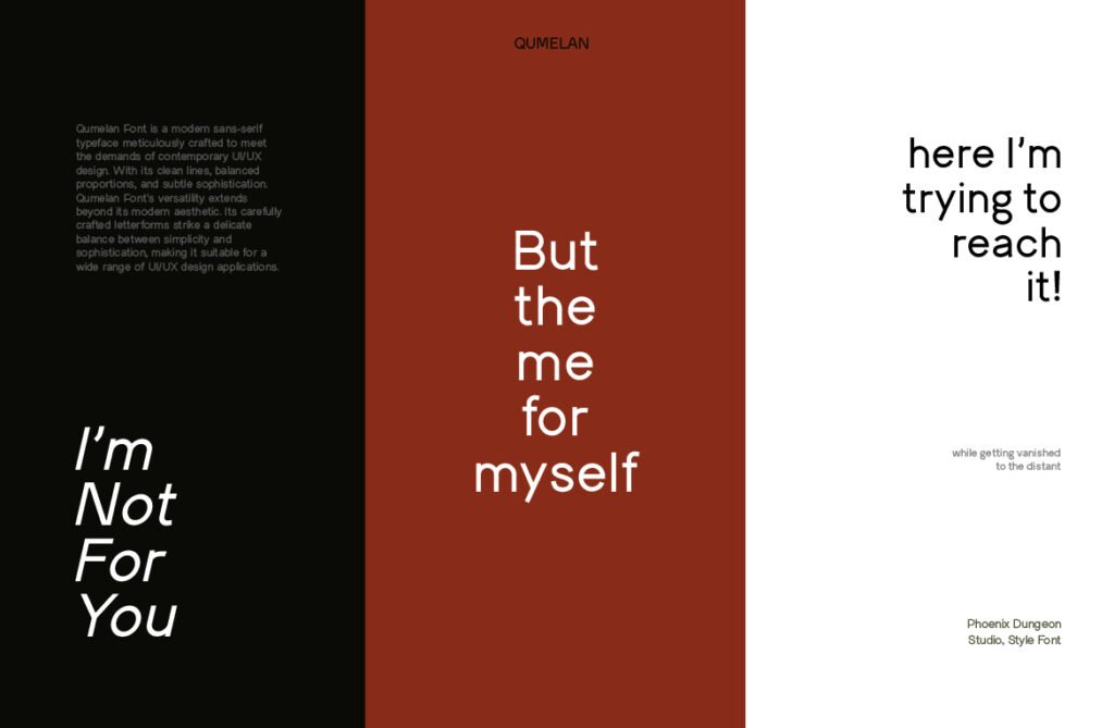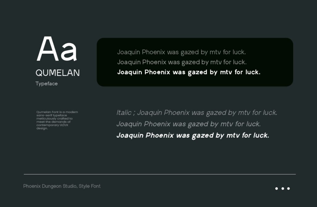 Qumelan – Sans serif display headline ui ux is a sleek and versatile typeface engineered for clarity, consistency, and visual impact across both digital interfaces and high-visibility design environments. With its geometric structure, open counters, and balanced proportions, Qumelan delivers a refined yet contemporary aesthetic that works seamlessly in UI/UX design, branding, advertising, and editorial applications. This font stands out for its dual functionality—performing exceptionally well as both a body text option and a bold display type.