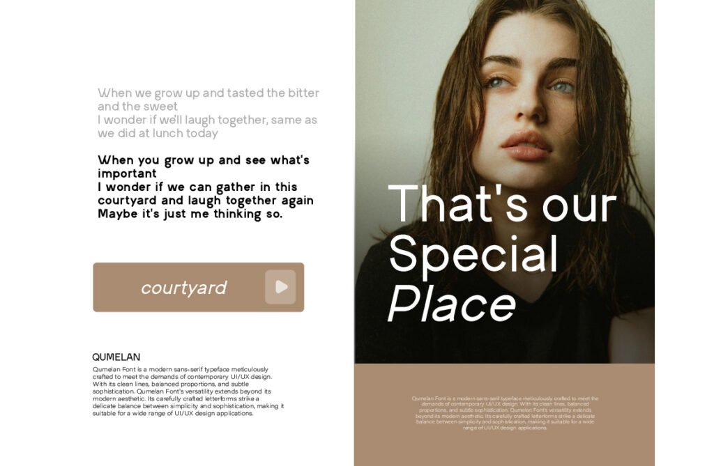 Its humanist sans-serif foundation ensures legibility at small sizes, making it ideal for app navigation, dashboard interfaces, and mobile content. At larger sizes, Qumelan’s sharp detailing and modern rhythm make it perfect for headlines, banners, and promotional graphics where style meets usability. Available in multiple weights—from light to extra bold—Qumelan offers designers a full typographic toolkit to create dynamic visual hierarchies without sacrificing harmony. The font includes extended language support, ligatures, and stylistic alternates, ensuring compatibility across global markets and professional design software.