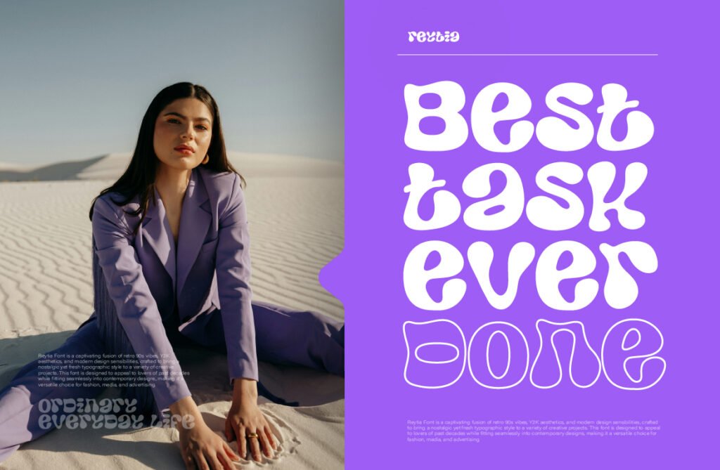 Reytia – Retro classic display vintage is a bold and nostalgic typeface inspired by mid-century typography, print advertisements, and hand-lettered headlines from the 60s and 70s. With its structured yet expressive letterforms, Reytia brings a timeless charm to modern design projects. Whether used in branding, editorial layouts, packaging, or promotional materials, this font bridges the gap between past elegance and present-day creativity. Each character in Reytia has been carefully crafted to reflect the warmth of analog design—featuring subtle texture overlays, soft edges, and balanced proportions that evoke a sense of heritage and craftsmanship.