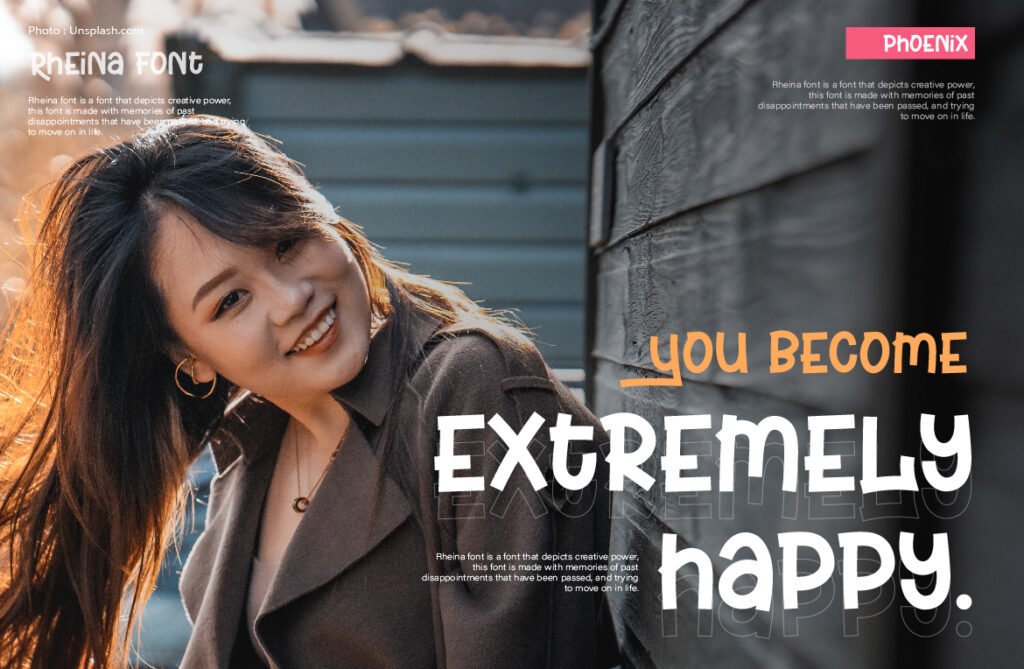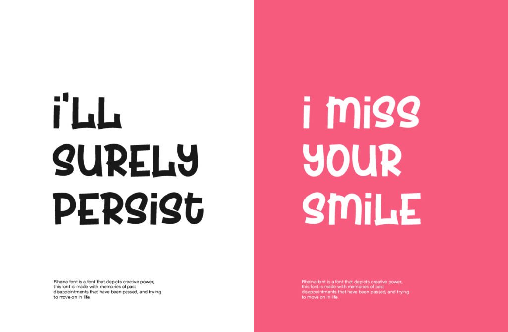 It thrives in editorial projects, romantic branding, wedding invites, or packaging for perfumes and lifestyle products. Rheina brings human touch to high-drama layouts. Its thick and emotional style pairs well with deep color palettes and luxury visuals. Use Rheina when your words aren’t just meant to be seen—they’re meant to be felt. Every stroke tells a story of longing, joy, or intensity.