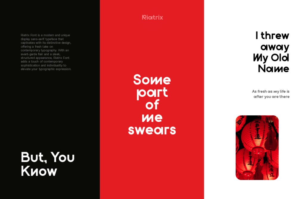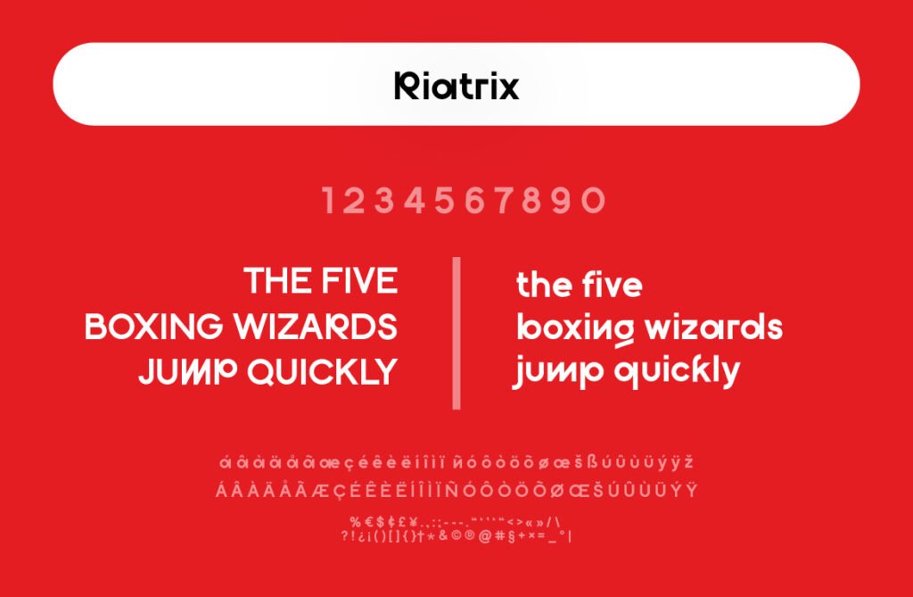 Riatrix – Sans serif modern display ui ux is a sleek and versatile typeface engineered for clarity, consistency, and visual impact across both digital interfaces and high-visibility design environments. With its clean geometric structure, open counters, and balanced proportions, Riatrix delivers a refined yet contemporary aesthetic that works seamlessly in UI/UX design, branding, advertising, and editorial applications. This font stands out for its dual functionality—performing exceptionally well as both a body text option and a bold display type.