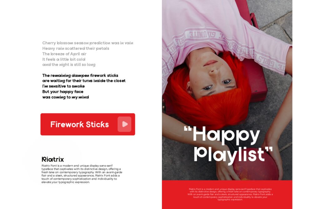 Its humanist sans-serif foundation ensures legibility at small sizes, making it ideal for app navigation, dashboard interfaces, and mobile content. At larger sizes, Riatrix’s sharp detailing and modern rhythm make it perfect for headlines, banners, and promotional graphics where style meets usability. Available in multiple weights—from light to extra bold—Riatrix offers designers a full typographic toolkit to create dynamic visual hierarchies without sacrificing harmony. The font includes extended language support, ligatures, and stylistic alternates, ensuring compatibility across global markets and professional design software.