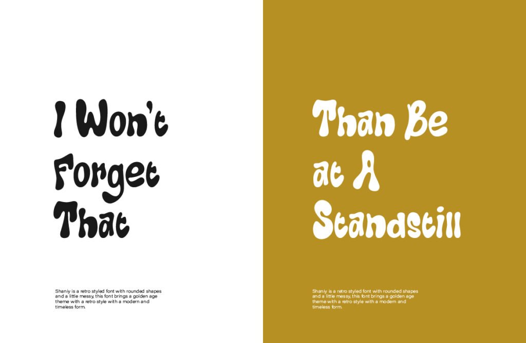 Perfect for youth fashion, playful branding, or lifestyle content with attitude, Shaniy instantly gives off an unserious, confident tone. It breaks the rules of symmetry and balance on purpose—making it ideal for designs that want to stand out through imperfection. When paired with bright colors or layered graphics, Shaniy becomes explosive. And when used with restraint, it offers just enough personality to breathe life into headlines and logos. This font doesn’t try to be neutral—it’s expressive, unpredictable, and proudly odd. For designers who want their words to feel fun, rebellious, and full of nostalgic spirit, Shaniy is a perfect fit.
