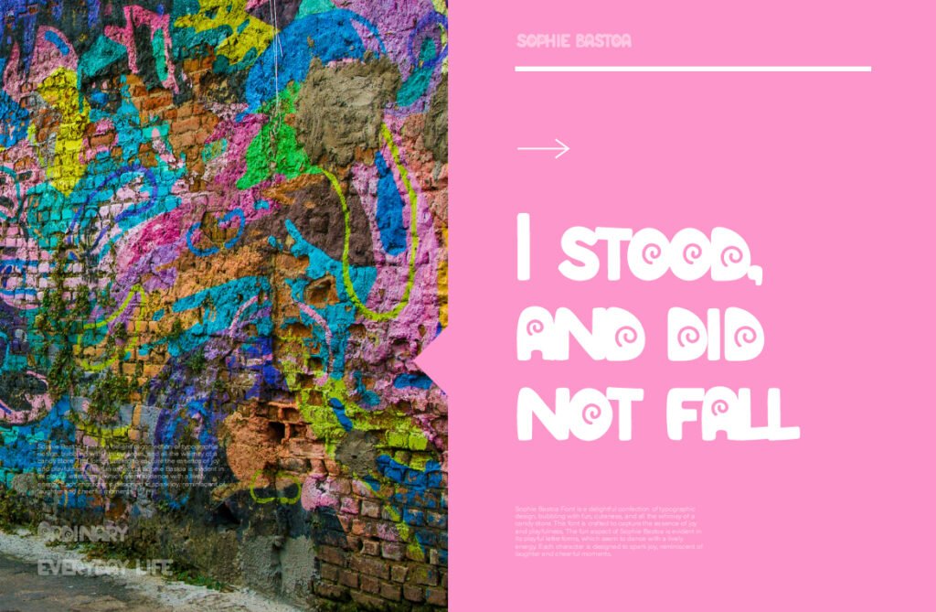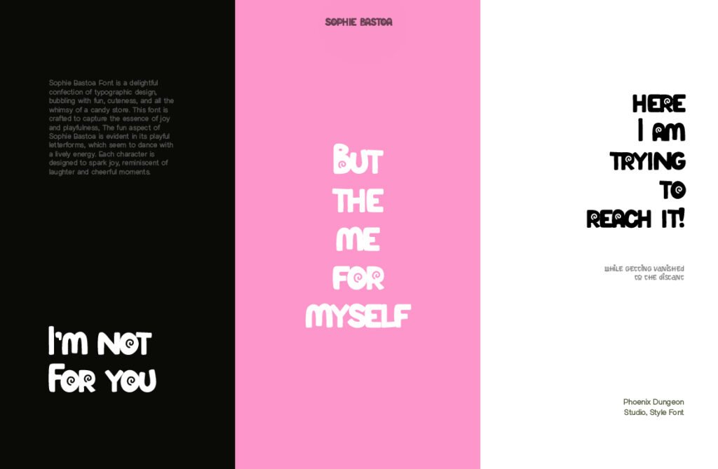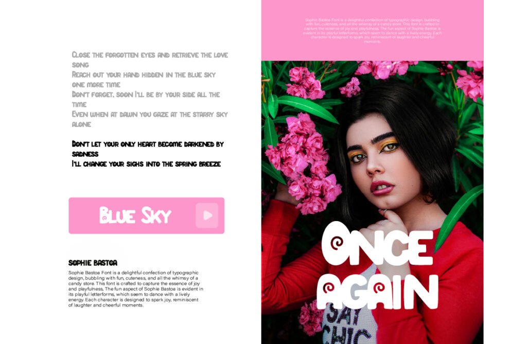 Despite its decorative nature, the font maintains excellent readability at larger sizes, making it ideal for use in packaging labels, social media headers, posters, and promotional banners where both style and clarity are important. Available in multiple styles—including regular, outlined, and shadowed—Sophie Bastoa allows for creative layering and customization to enhance visual impact. Sophie Bastoa works exceptionally well in environments that emphasize cleanliness, relaxation, and happiness. It pairs beautifully with pastel color schemes, watercolor effects, and illustrated bubble graphics, reinforcing a sense of purity and playfulness. Whether used in cosmetic branding, greeting cards, or animated content, this font adds a touch of warmth that connects with audiences on an emotional level.