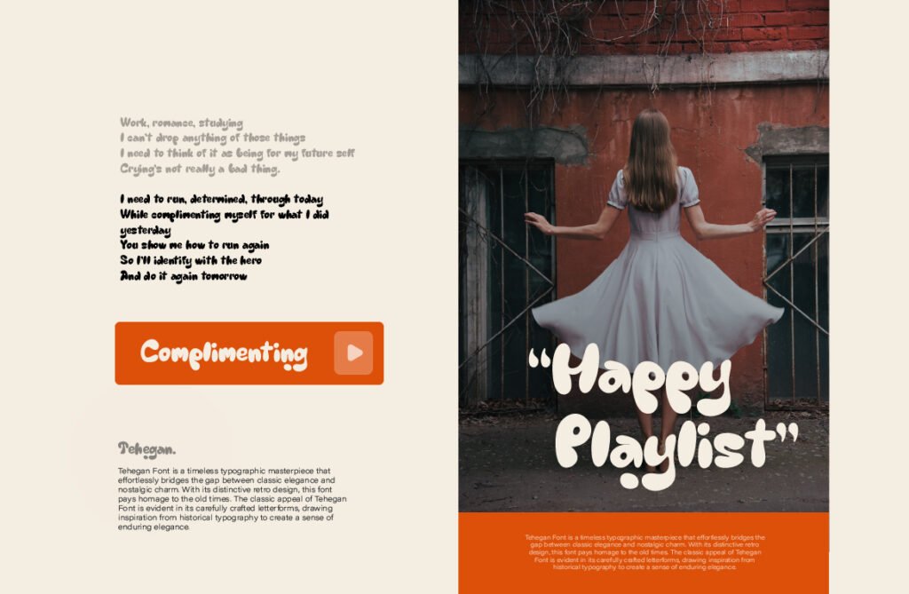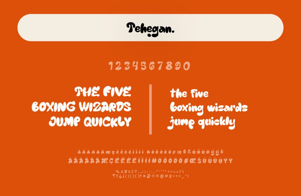 Despite its decorative nature, the font remains highly legible when used at moderate to large sizes, making it ideal for posters, logos, children’s books, and animated content. Tehegan works exceptionally well in designs targeting younger audiences, retro-themed brands, or lifestyle products that want to communicate joy, freedom, and creativity. It pairs beautifully with neon gradients, chrome effects, and pixel-inspired textures, aligning perfectly with current trends in Gen Z aesthetics and digital revivalism.