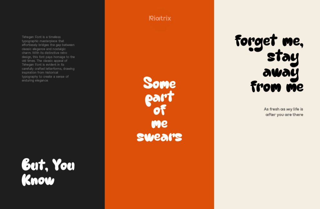 Tehegan – Retro classic balloon display is a vibrant and nostalgic typeface inspired by mid-century cartoon lettering, inflatable shapes, and vintage pop culture. With its rounded contours, exaggerated curves, and playful energy, Tehegan brings back the charm of 70s and 80s-style typography while maintaining a fresh and modern appeal for today’s creative projects. Each letter mimics the softness of air-filled balloons or liquid forms, giving Tehegan a tactile and whimsical presence that makes it stand out in branding, packaging, illustration, and entertainment media.