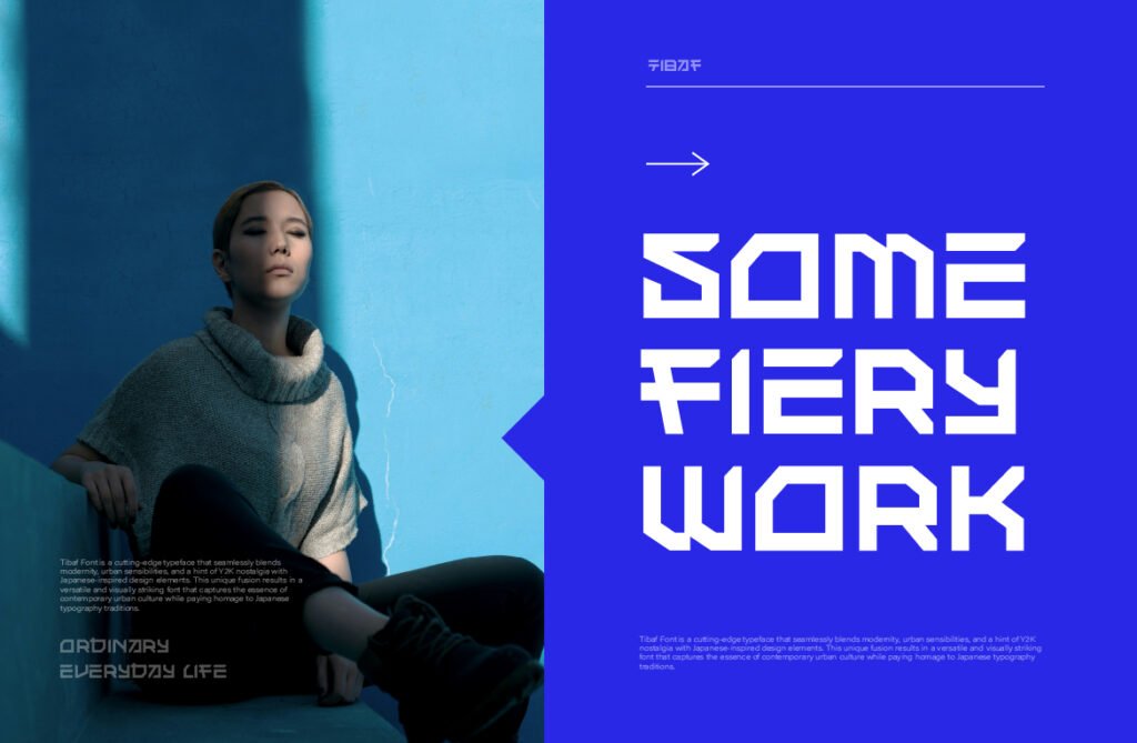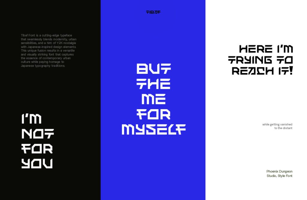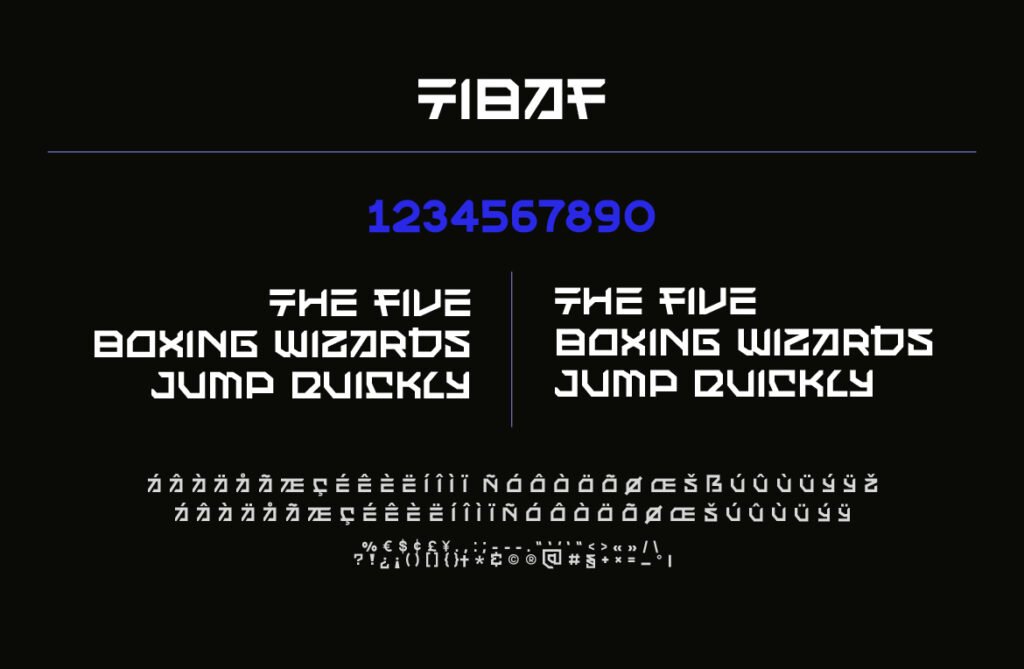 The font’s exaggerated weight and angular detailing ensure excellent visibility at a distance, making it ideal for use in posters, apparel branding, vehicle wraps, and digital graphics. Despite its intense look, Tibaf maintains clarity and legibility, especially in large-scale applications. Tibaf works exceptionally well in environments that emphasize youth culture, rebellion, and mechanical artistry. It pairs beautifully with neon gradients, chrome effects, and graffiti-style backgrounds, reinforcing a sense of urban authenticity and visual intensity. Whether used in logo design, event promotions, or product packaging, Tibaf adds a layer of raw energy that enhances the overall design experience.