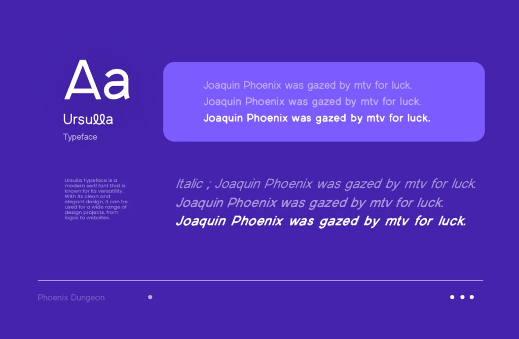The font comes in multiple weights—light, regular, medium, bold—allowing for flexible use in headings, body text, buttons, and navigation menus. Its neutral yet refined appearance makes it suitable for both functional and aesthetic design applications. Whether used in tech startups, corporate branding, or e-commerce platforms, Ursulla brings a sense of professionalism and modernity. It also supports multilingual characters, making it accessible for global audiences. As a versatile and scalable font, Ursulla ensures legibility and visual harmony across devices and screen sizes.