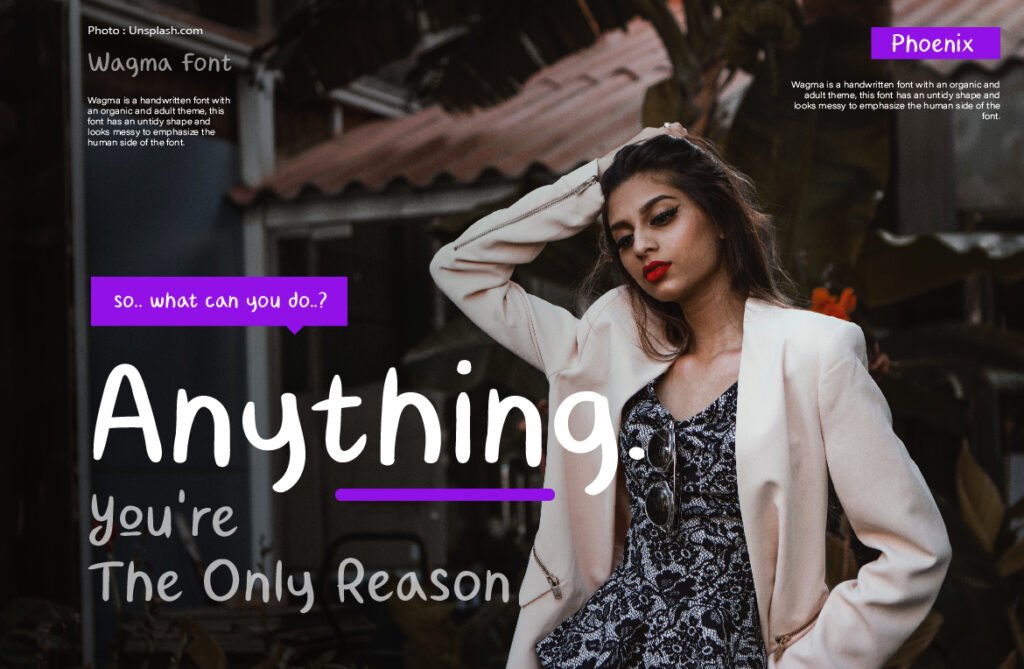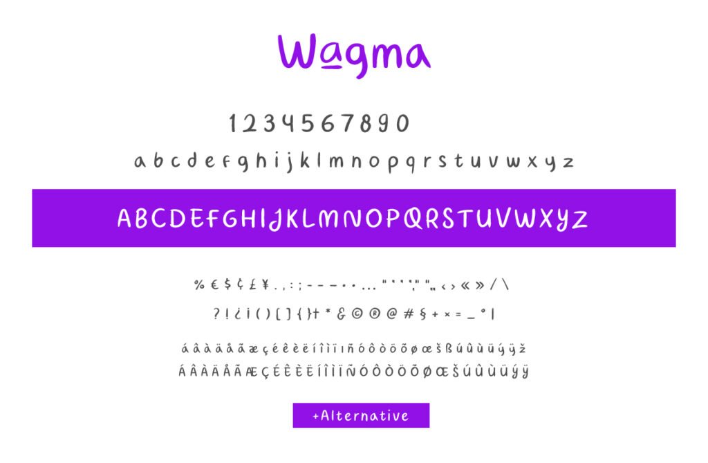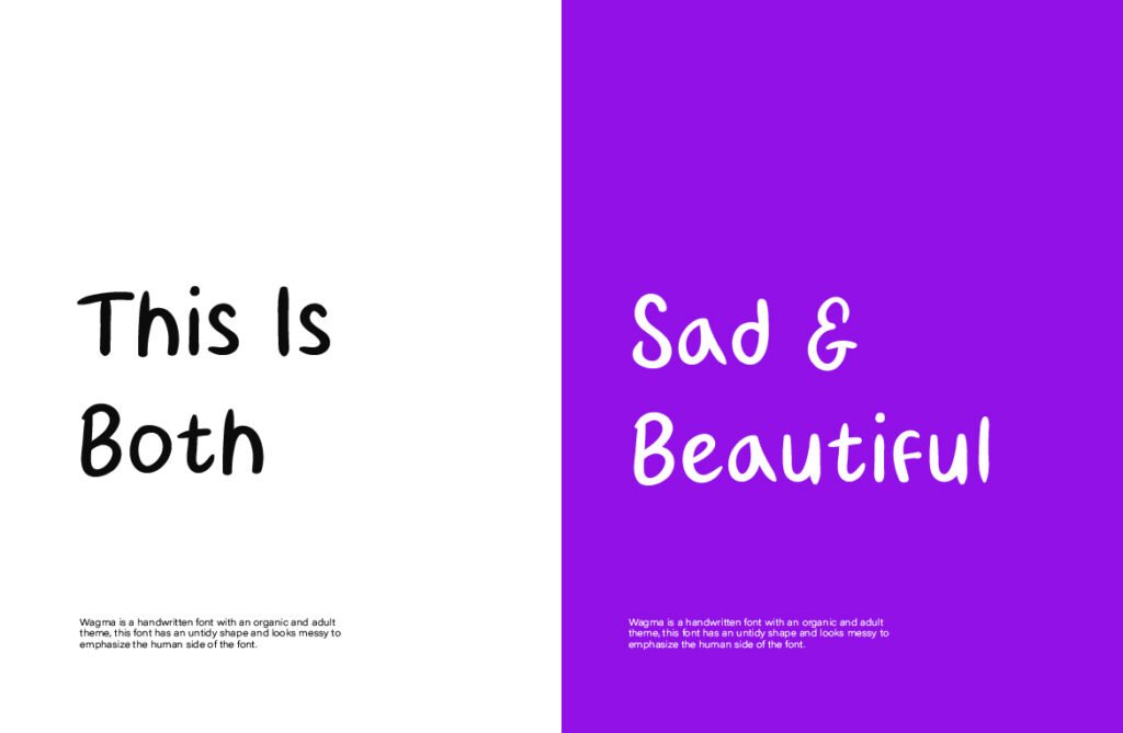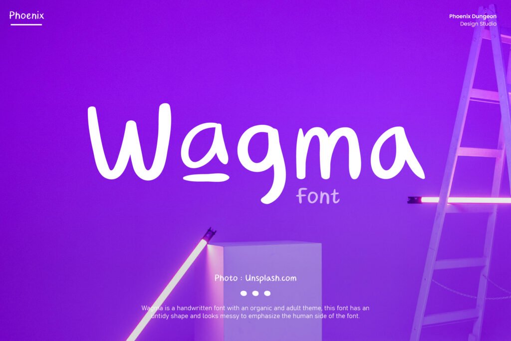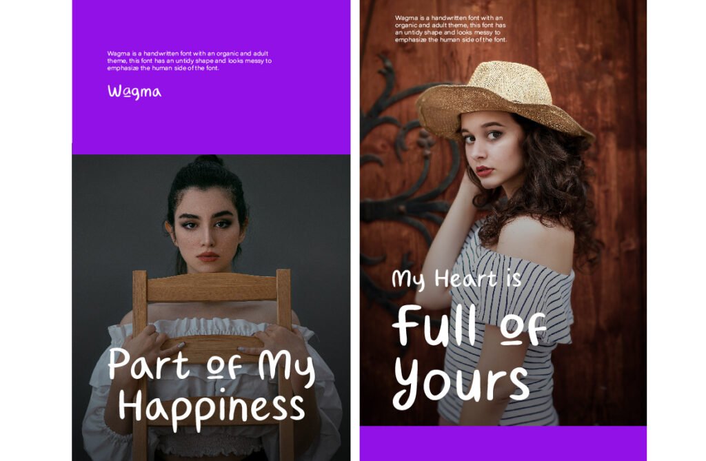 Wagma is a romantic display handwriting font that’s full of expressive energy and poetic flow. Designed with flowing curves and confident spacing, it blends the charm of handwriting with the strength of display lettering. It’s the kind of font that feels like a love note turned into a logo—a beautiful blend of feeling and form. The strokes are elegant, yet grounded; it’s personal, but not casual.