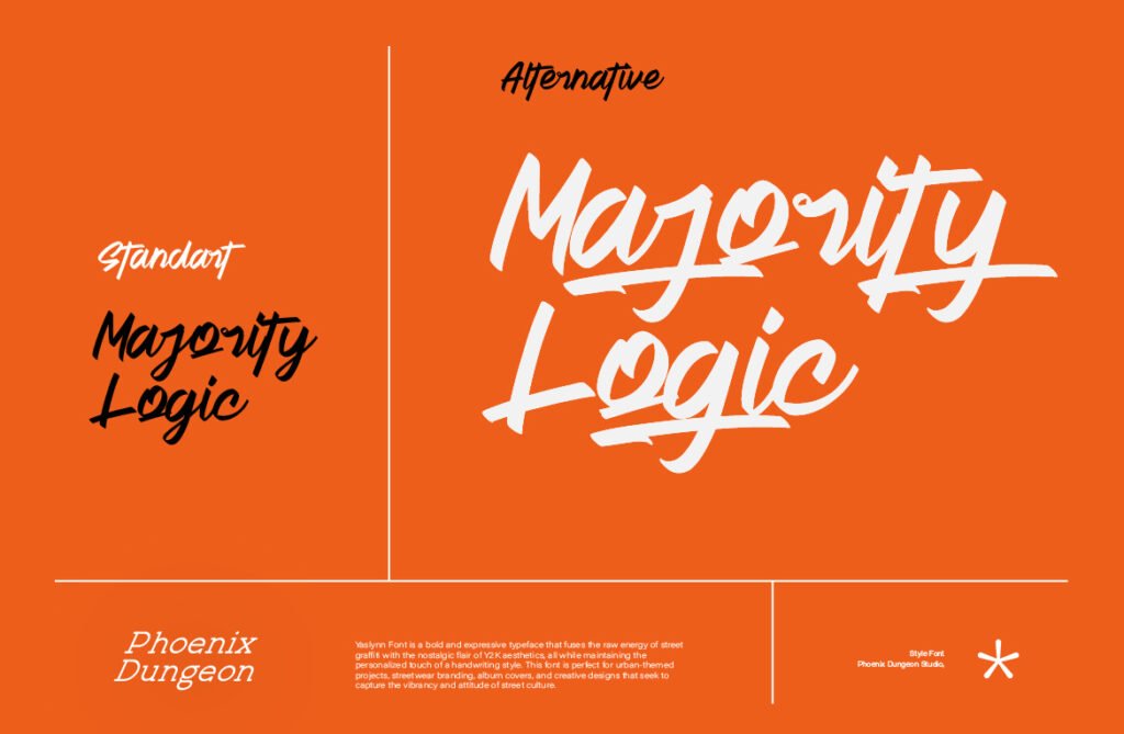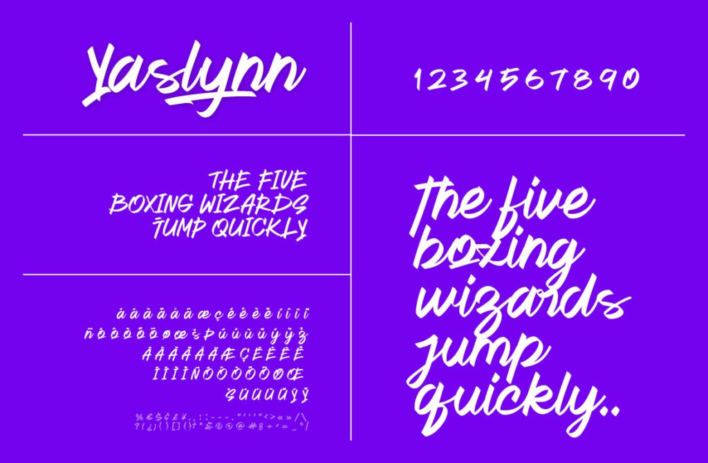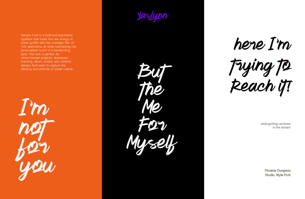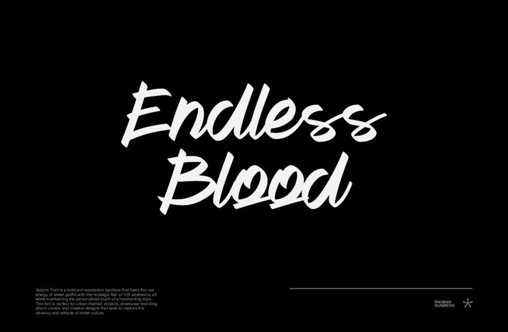 Despite its intense look, Yaslynn maintains clarity and legibility, especially in large-scale applications such as posters, apparel branding, and digital banners. The font supports alternate characters, ligatures, and stylistic swashes, allowing for personalized text composition that enhances its expressive potential. Yaslynn works exceptionally well in environments that emphasize Gen Z nostalgia, underground culture, and digital futurism. It pairs beautifully with chrome effects, neon gradients, and pixel-inspired textures, reinforcing a sense of urban authenticity and visual storytelling. Whether used in logo design, event promotions, or product packaging, Yaslynn adds a layer of raw energy that enhances the overall design experience.