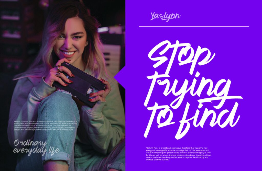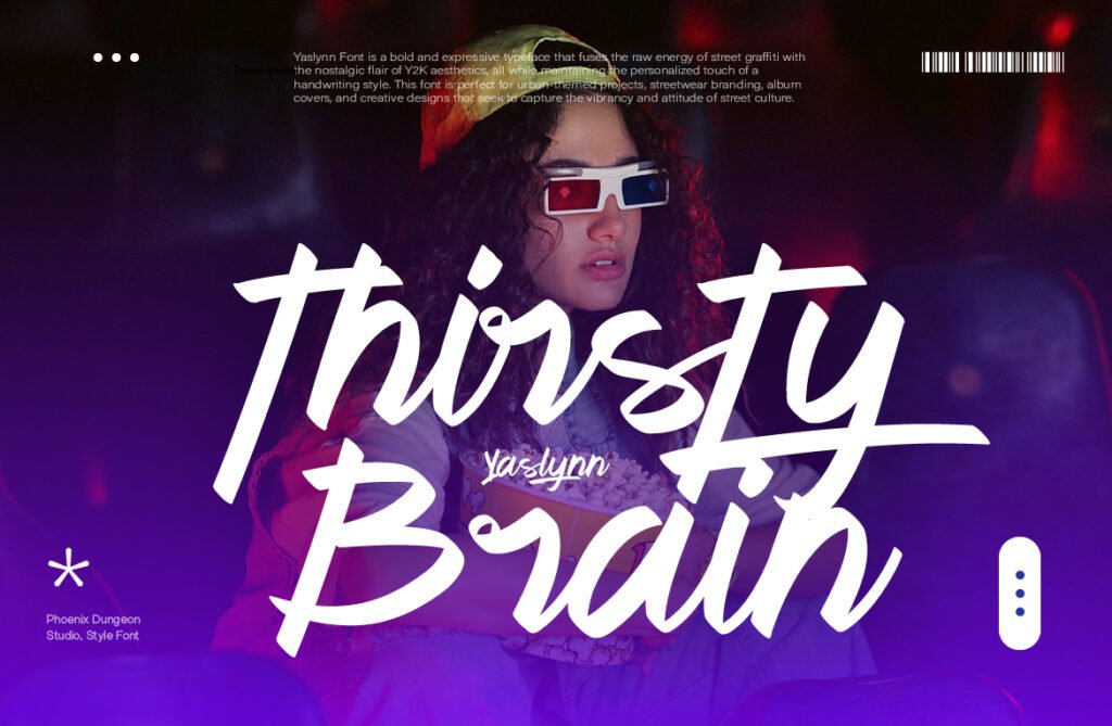 Yaslynn – Handwriting street style y2k script is a bold and expressive typeface that captures the raw energy of urban youth culture, graffiti, and early 2000s digital aesthetics. With its stylized script structure, uneven baselines, and pixel-inspired detailing, Yaslynn brings a sense of rebellion, nostalgia, and visual intensity to modern typographic projects. Whether used in branding for streetwear, music visuals, or animated content, this font adds a layer of youthful authenticity and expressive flair that enhances the overall design experience. Each letter in Yaslynn mimics the dynamic strokes of real graffiti markers and spray paint, giving it a tactile and powerful presence that feels both nostalgic and current.