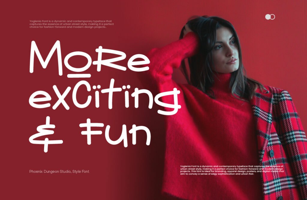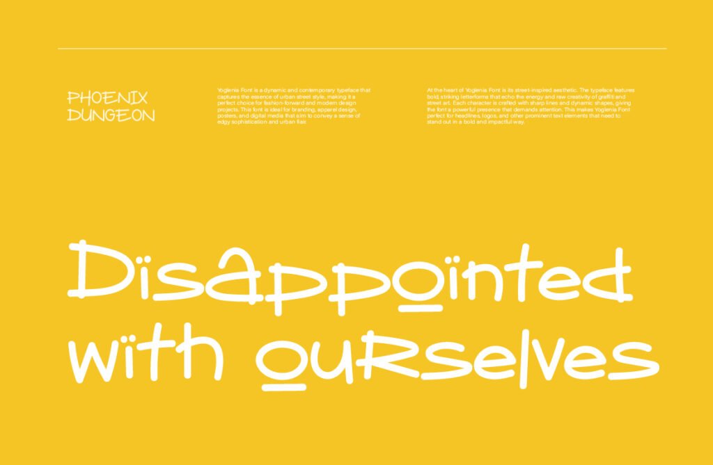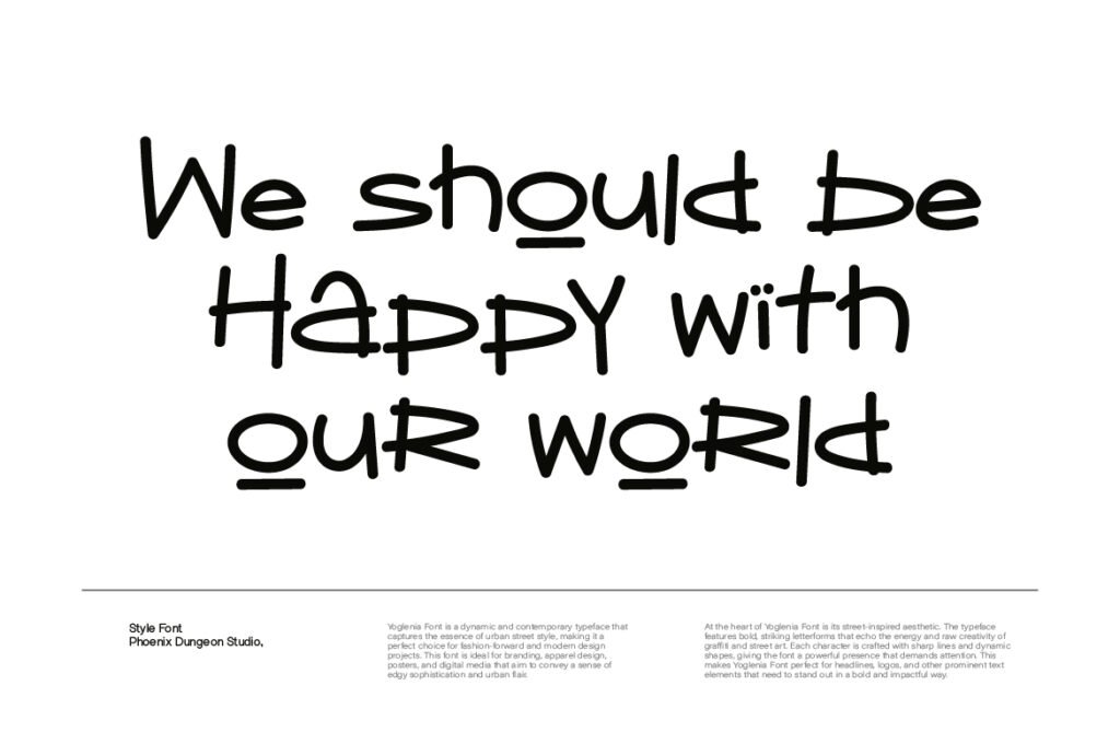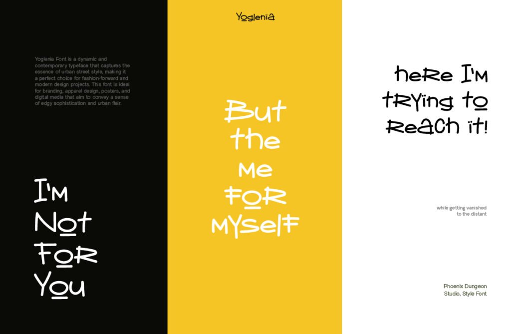 Despite its informal appearance, the font maintains excellent readability, especially at medium to large sizes, making it suitable for both screen and print applications. Available in multiple styles—including outlined, shadowed, and textured—Yoglenia allows for creative layering and customization to enhance its expressive appeal. Yoglenia thrives in branding environments that emphasize sustainability, mindfulness, and organic living. It pairs beautifully with botanical illustrations, warm color palettes, and minimalist layouts, reinforcing a sense of harmony and natural beauty. Whether used in product packaging, quote-based visuals, or wellness branding, this font enhances the emotional tone of any design.
