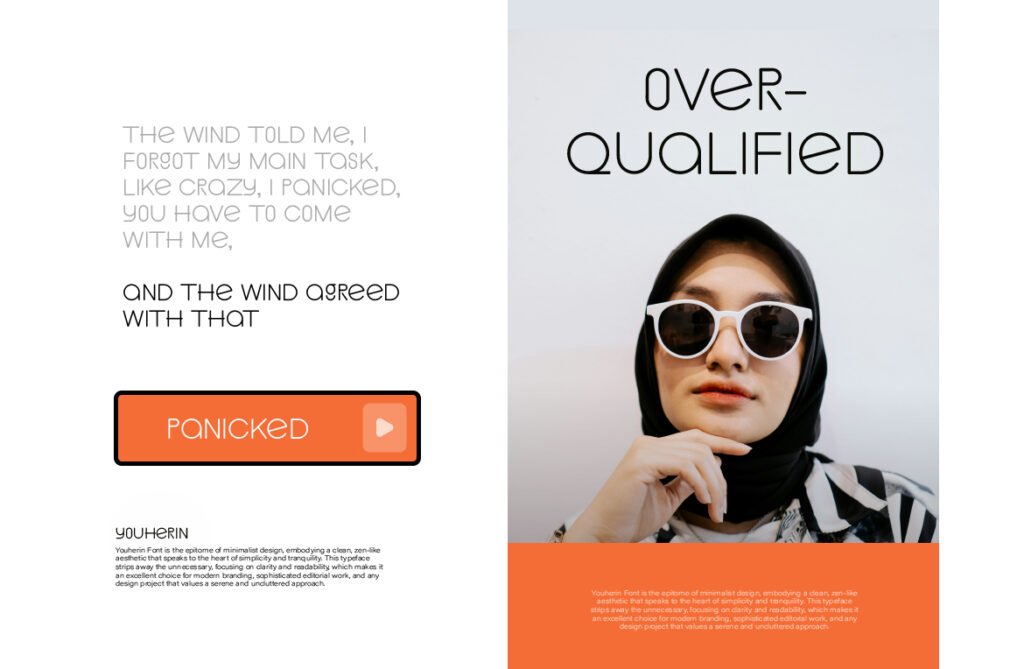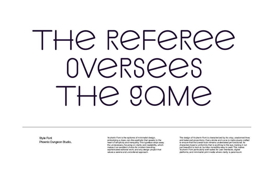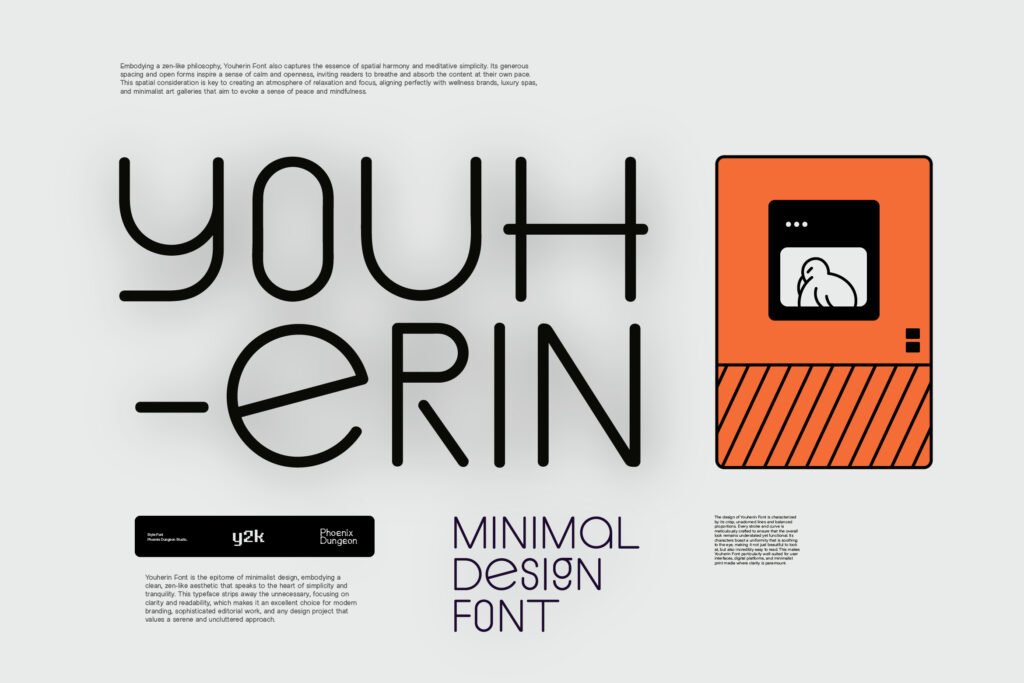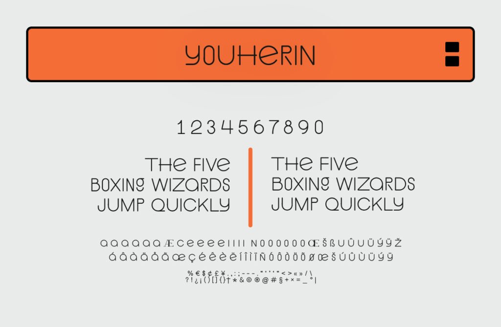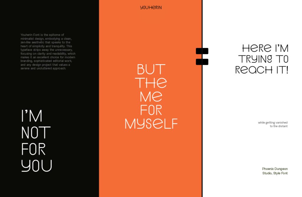 Youherin – Minimalist sans serif display modern is a sleek and refined typeface designed for clarity, elegance, and seamless integration into modern design environments. With its clean lines, open counters, and balanced proportions, Youherin delivers a minimalist yet powerful aesthetic that works seamlessly in UI/UX design, branding, advertising, and editorial applications. It’s ideal for designers who want to communicate professionalism and simplicity while maintaining a strong visual presence. Each character in Youherin is carefully crafted to ensure legibility even at small sizes, making it perfect for use in app navigation, dashboard interfaces, and mobile content.
