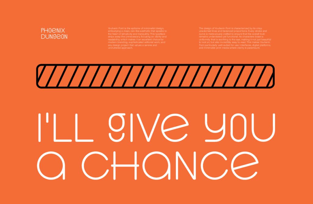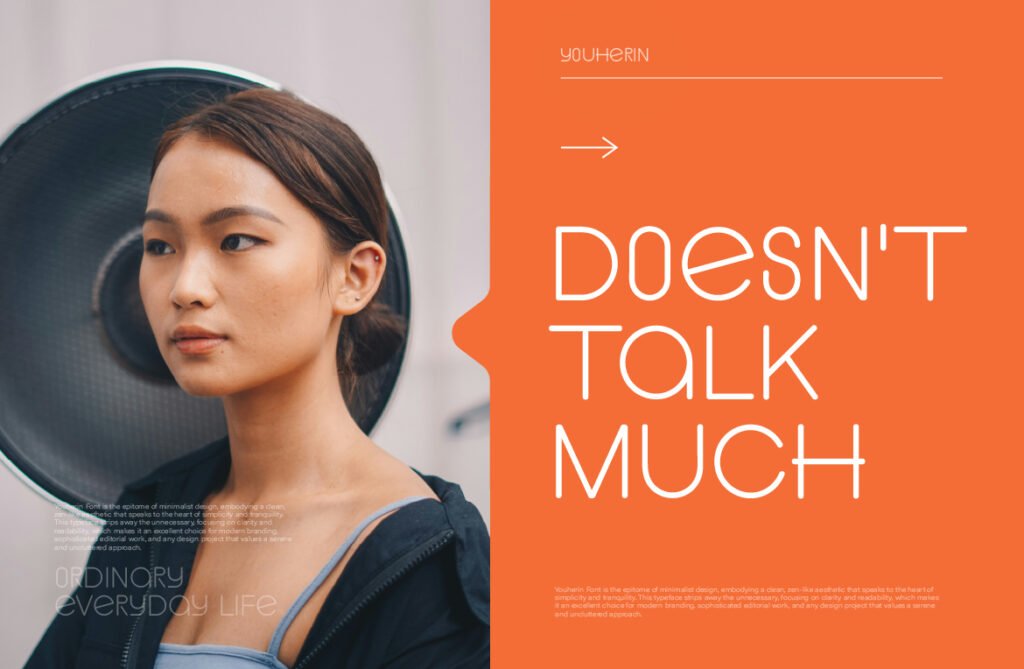 Its geometric sans-serif foundation gives it a contemporary edge, while its thin structure adds a touch of refinement and subtlety. Despite its minimalist appearance, Youherin maintains a strong typographic rhythm that ensures consistency across screens and platforms. Youherin works exceptionally well in environments that emphasize minimalism, neutrality, and clarity. It pairs beautifully with monochrome layouts, soft gradients, and flat design aesthetics, reinforcing a sense of calm and order. Whether used in wellness apps, corporate reports, or lifestyle branding, this font enhances the visual narrative and emotional appeal of any design.